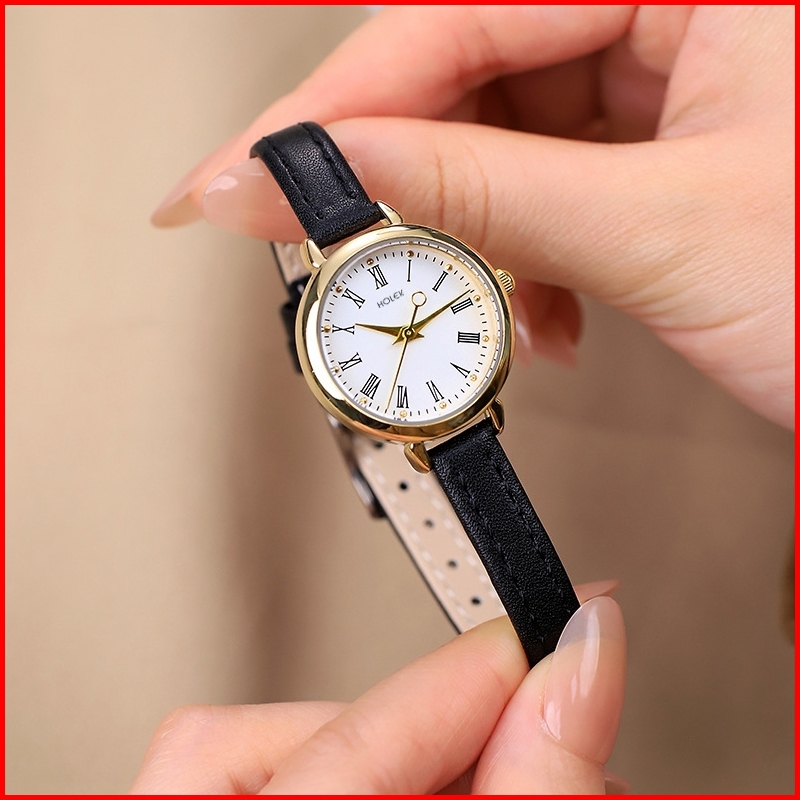 Holek 8716 Jam Tangan Wanita Baru Asli Dial Kecil Bulat Kulit Sabuk Elegan Retro Tahan Air Jam Tangan Wanita
