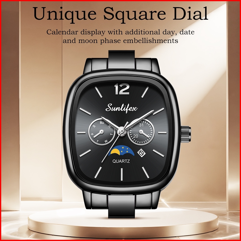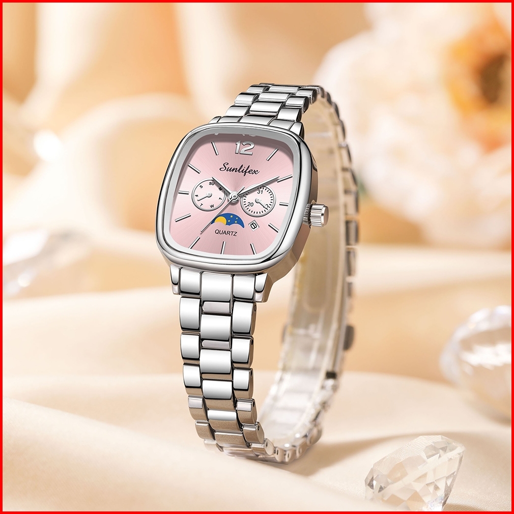Sunlifex Jam Tangan Wanita Original Kalender Kasual Korean Style Tali Paduan Jam Tangan Cewek B006
