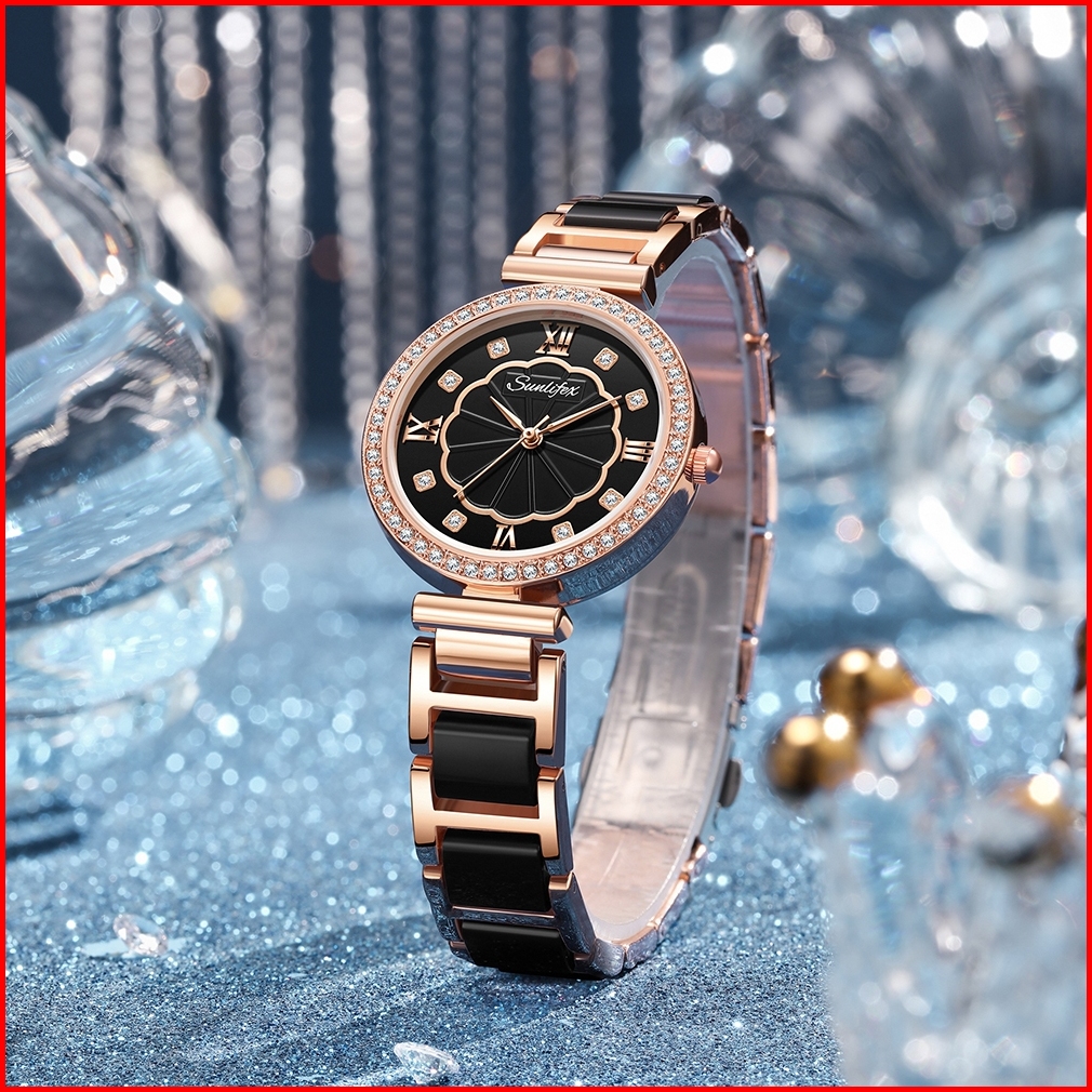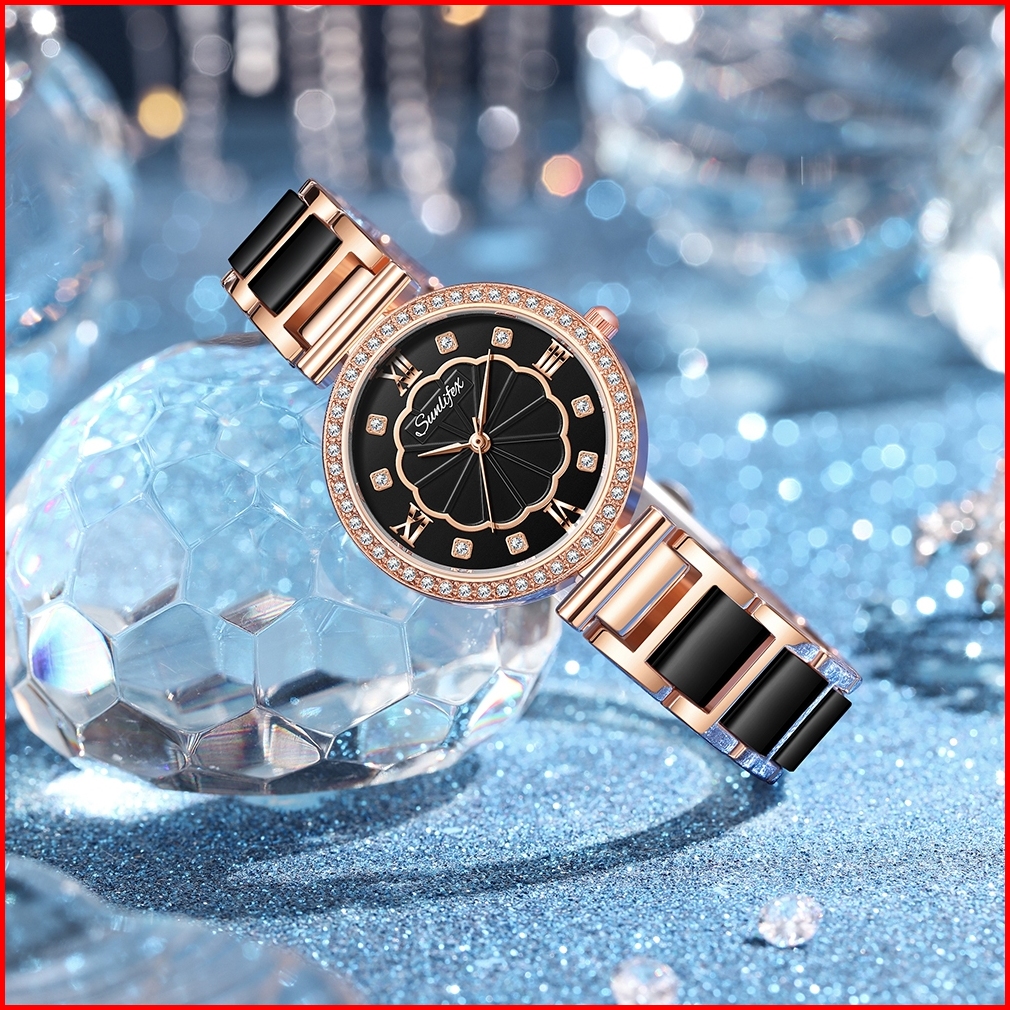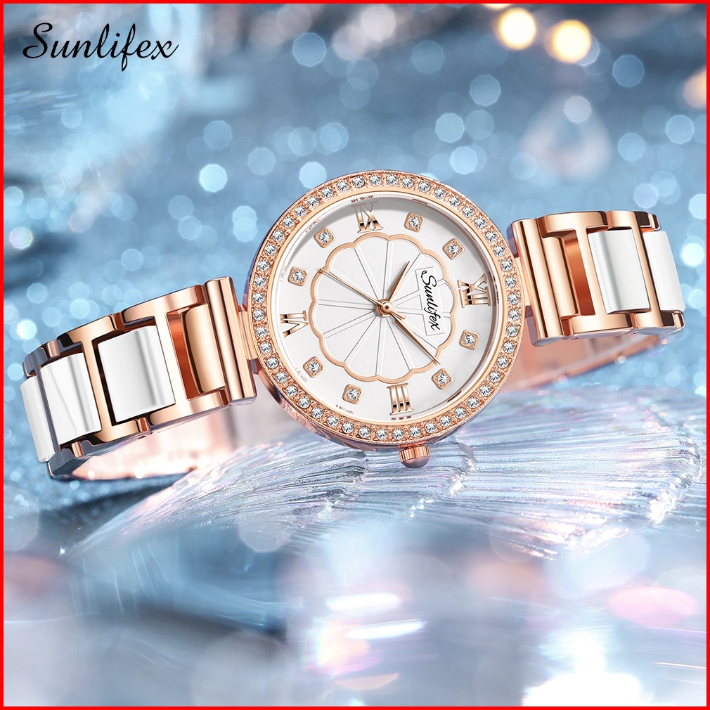 Sunlifex Jam Tangan Wanita 6032 Quartz Korea Kasual Tali Keramik Jam Tangan Cewek Kuarsa
