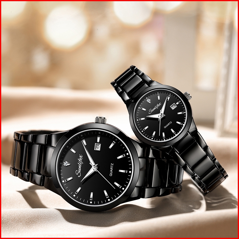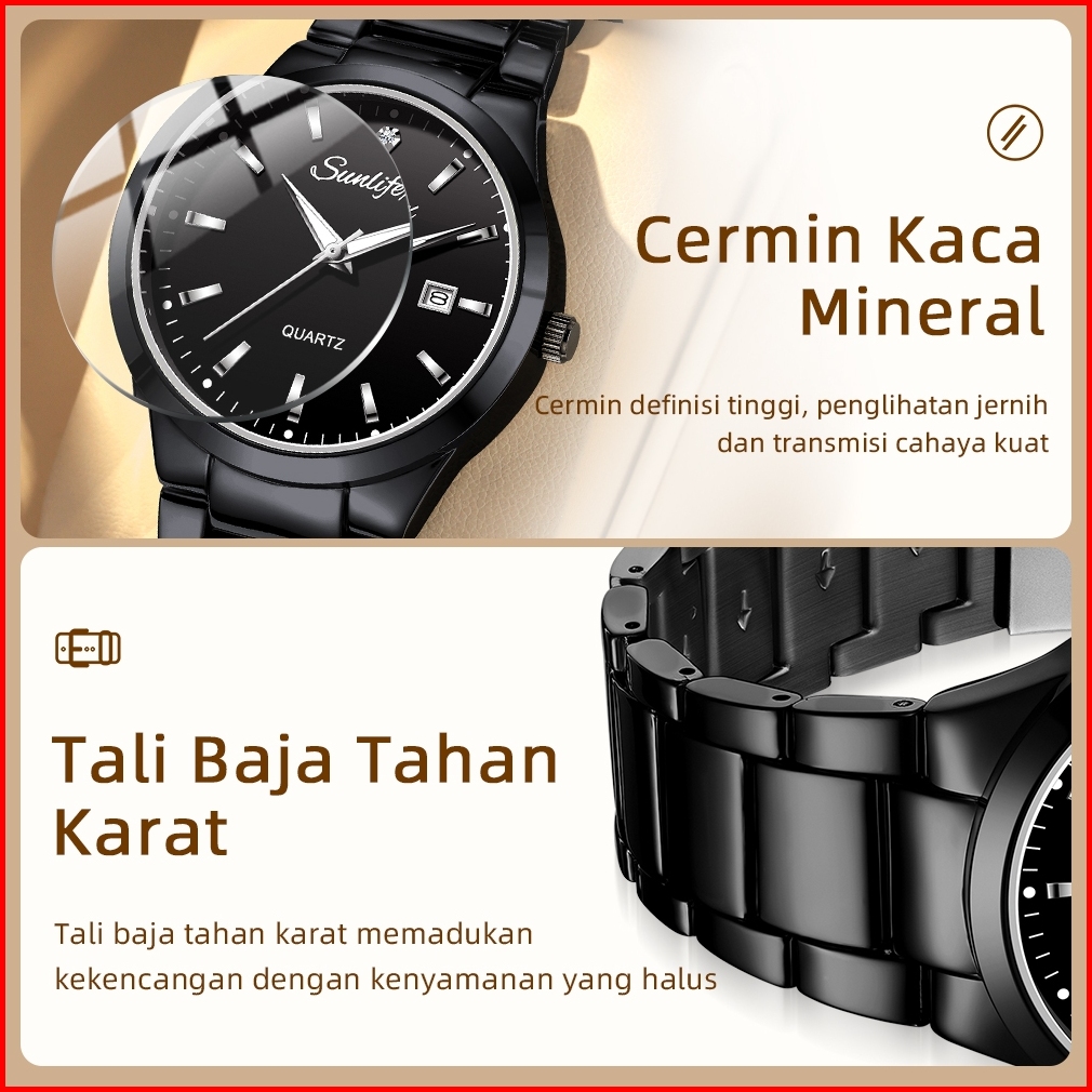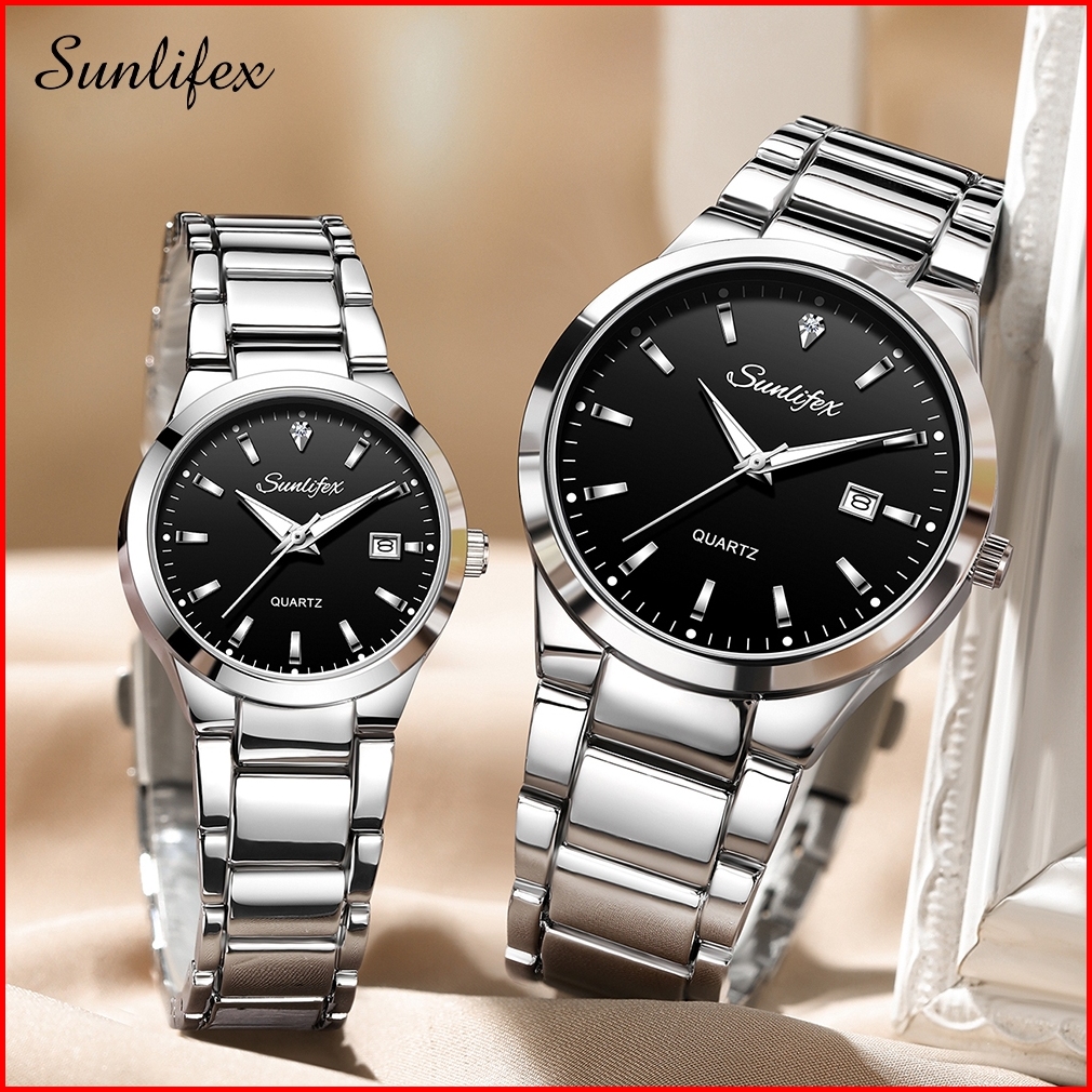Sunlifex Jam Tangan Couple Original Tanggal Luminous Santai Tali Stainless Steel Jam Tangan Pria Wanita 9108