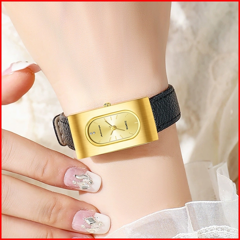 Aokeyo F055 Jam Tangan Wanita Anti Air Original Kulit Retro Tali Jam Tangan Cewek Square Casual High-end Luxury Simple W