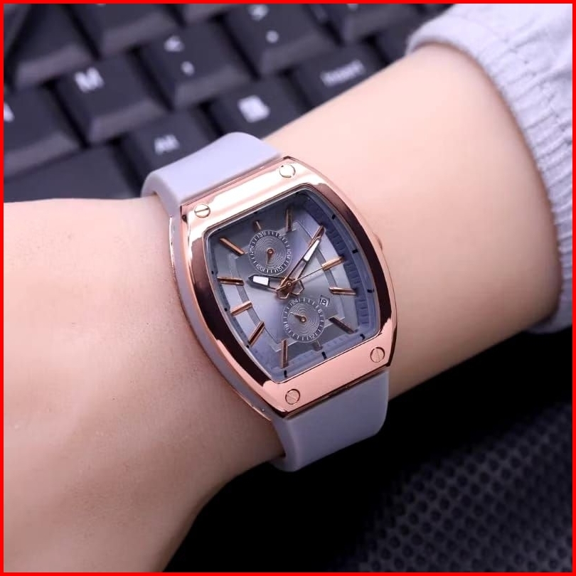 Promo Jam Tangan Wanita Terbaru Foxxil Anti Air Mode Oval Analog Tanggal On Tali Rubber Best Seller