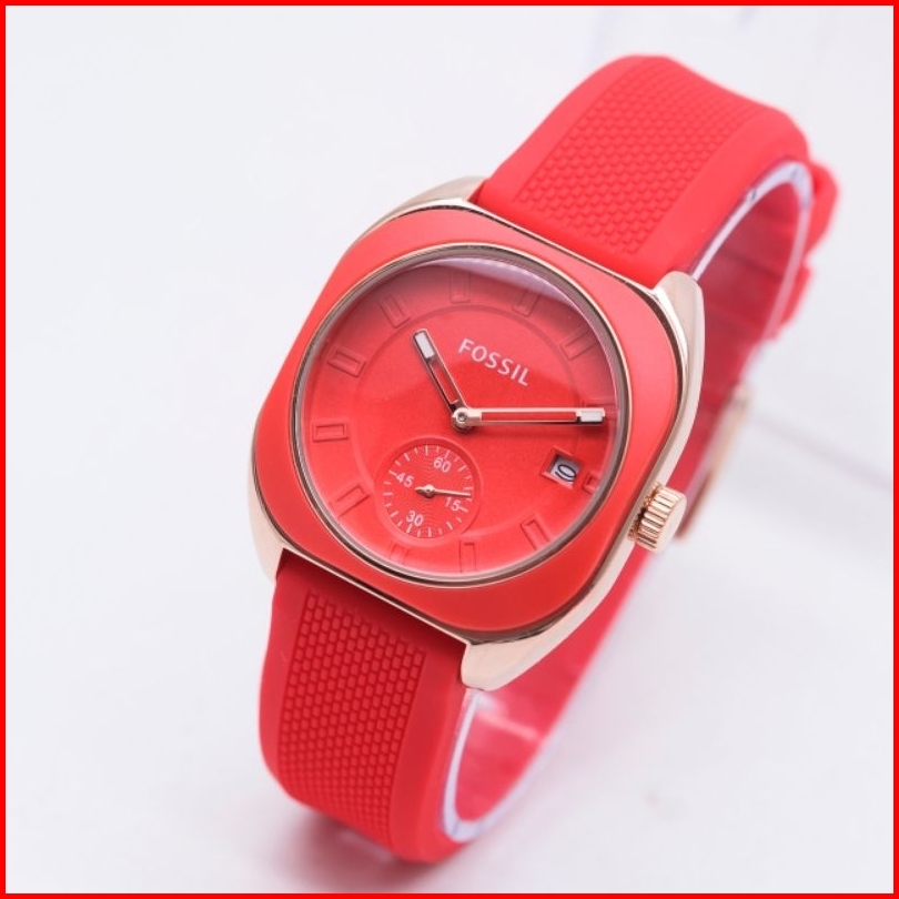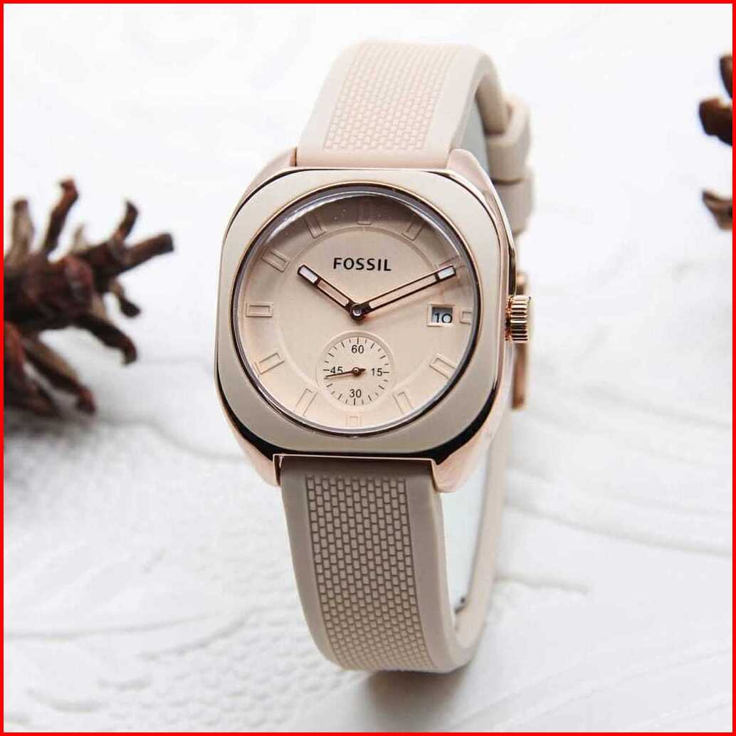 Jam Tangan Wanita F-oss1l Segi Rubber Karet Tanggal Aktif Chrono Off Free Box Analog Quartz Tahan Air