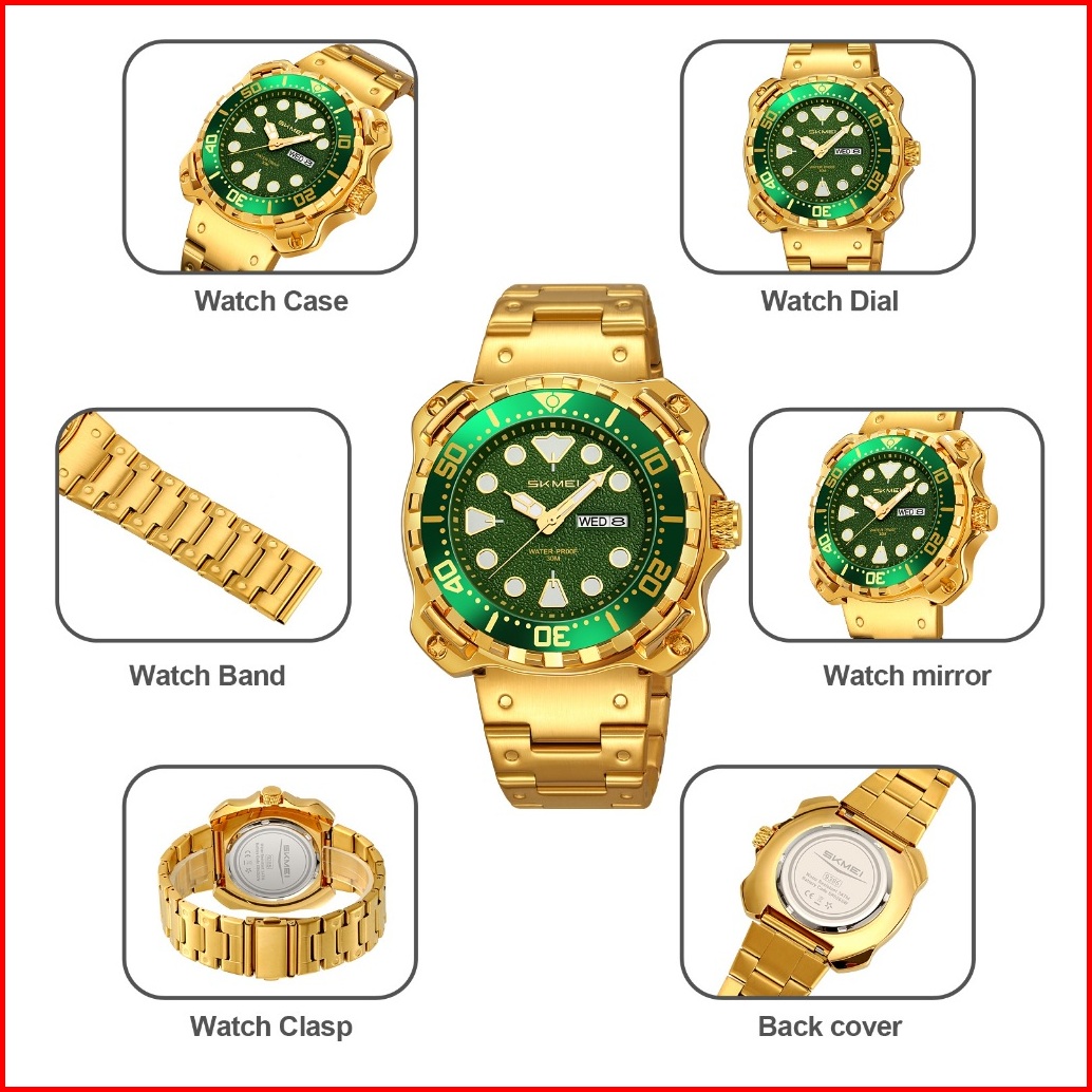 Skmei 9385 Jam Tangan Pria Analog Tali Stainless Steel Mgos