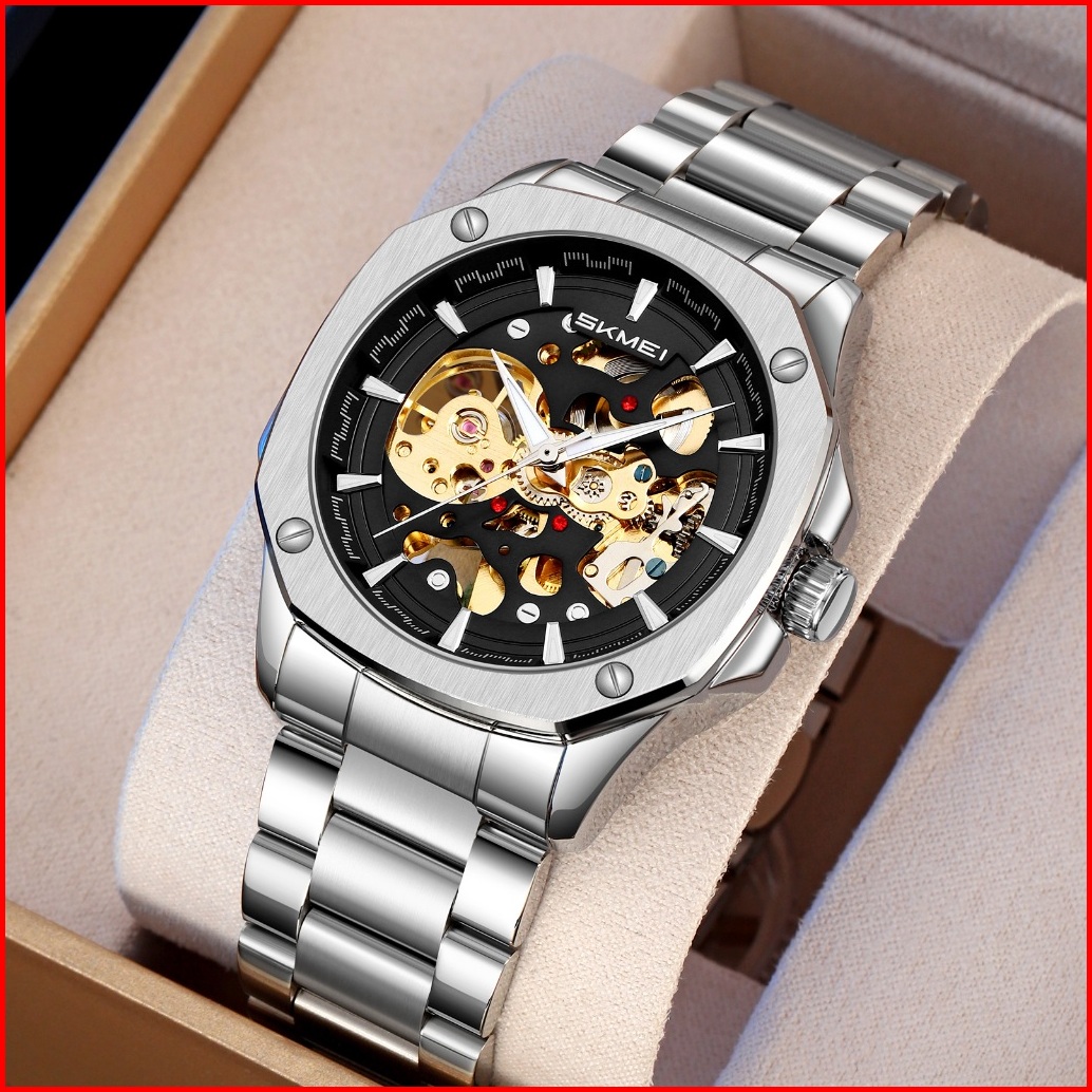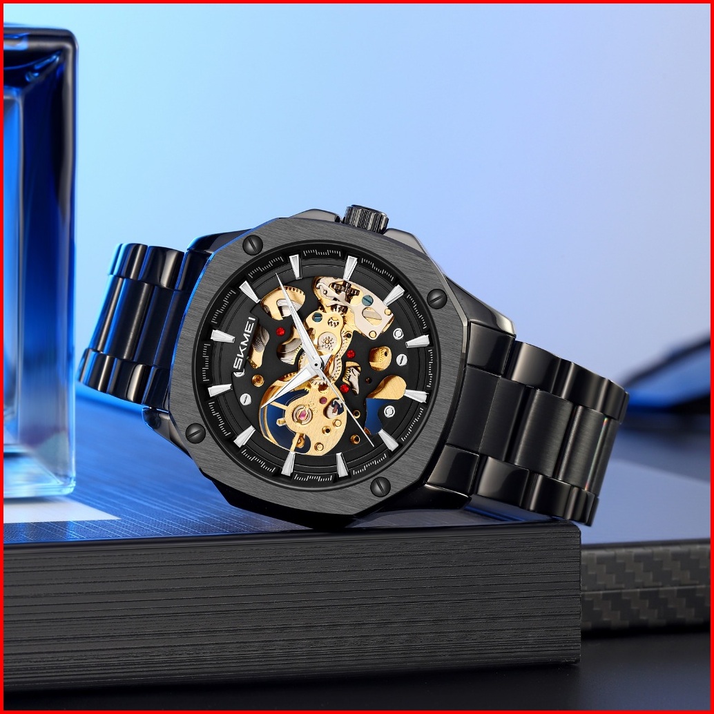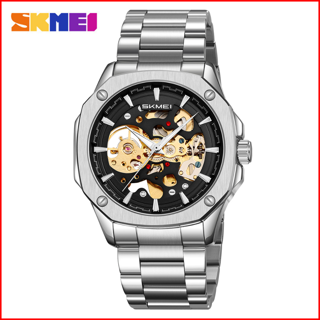 Skmei 9378 Jam Tangan Pria Automatic Analog Tali Stainless Rantai Mgos