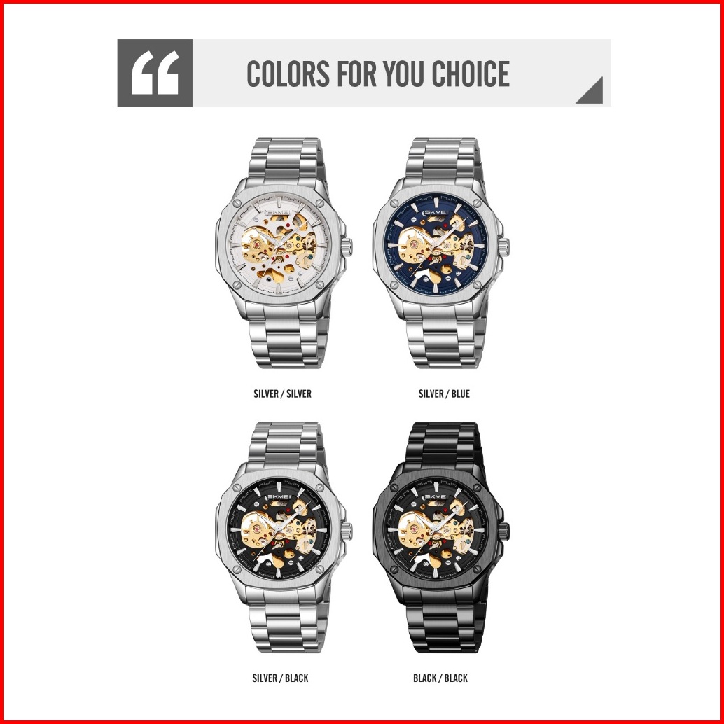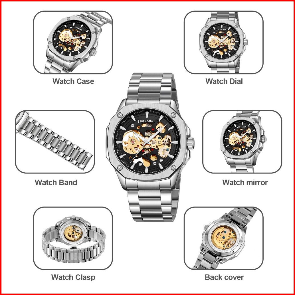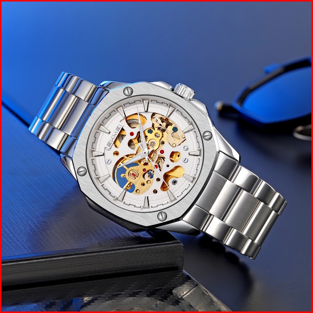 Skmei 9378 Jam Tangan Pria Automatic Analog Tali Stainless Rantai Mgos