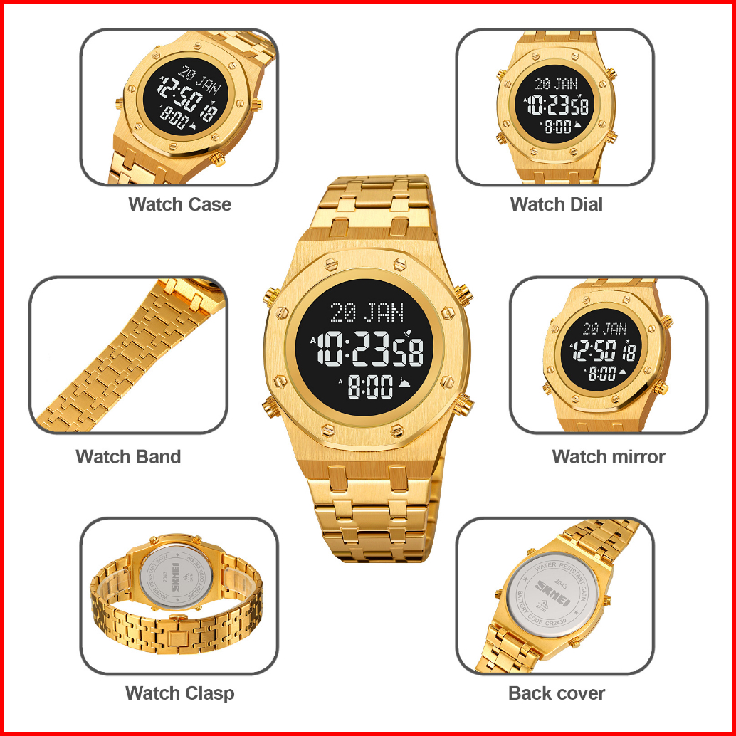 Skmei 2043 Jam Tangan Pria Digital Muslim Kiblat Anti Air 3 Bar Mgos