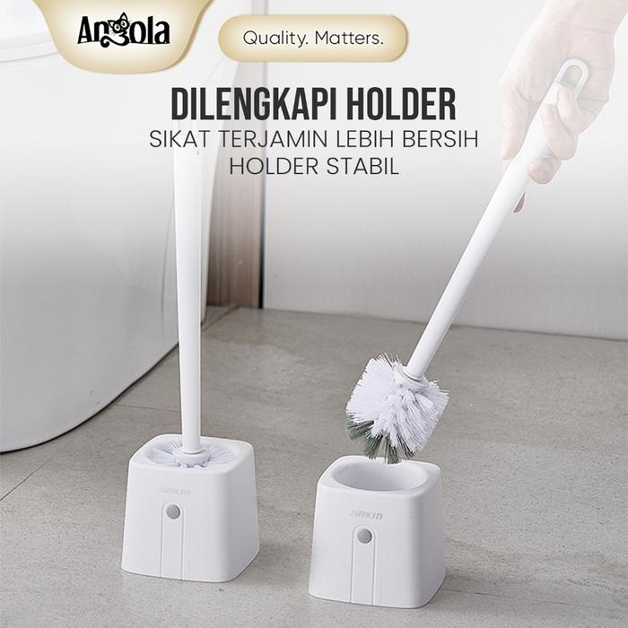 Angola Sikat Pembersih Kloset S18 Sikat Pembersih Toilet Duduk Jongkok Dengan Holder Gagang Brush - Putih