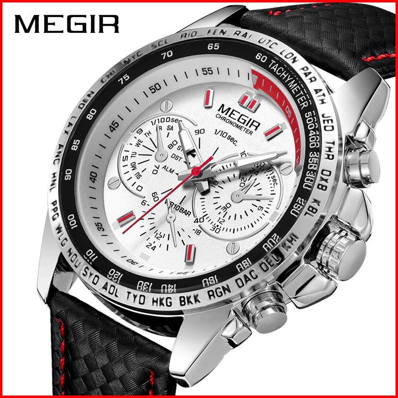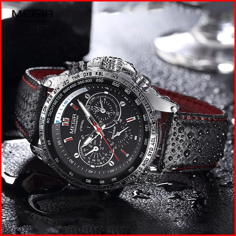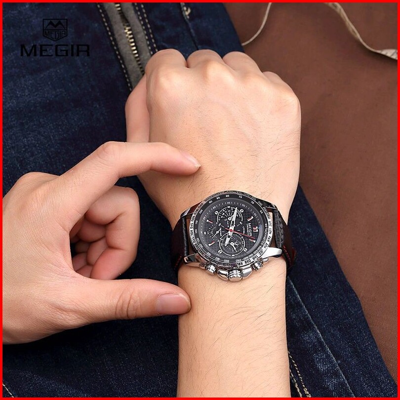 Megir 1010 Jam Tangan Pria Analog Tali Kulit Mgos