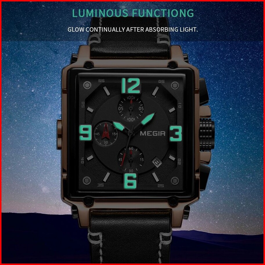 Megir 2061 Jam Tangan Pria Analog Chronograph Tali Kulit Mgos