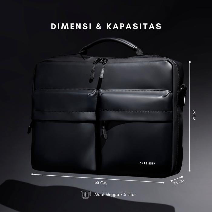 CARTIERA APERTO TAS SELEMPANG LAPTOP PRIA SHOULDER BAG TAS KERJA KANTOR LAPTOP 14 INCH PREMIUM WATERPROOF - BLACK