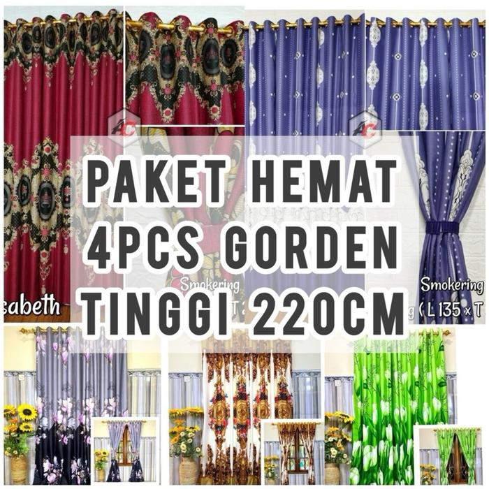 Promo Paket 4Pcs Gorden Jendela & Pintu Ukuran Tinggi 220Cm Dan 150Cm Terlaris Minimalis Bahan Katun Micro Disperse - Ab