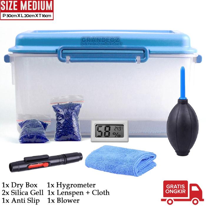 DRY BOX MEDIUM CAMERA DRYBOX KOTAK KAMERA BLOWER LENS PEN CLEANING SET KIT PEMBERSIH ANTI JAMUR BIRU - DRYBOX+CLEANING