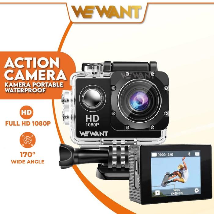 WEWANT KAMERA ACTION 1080P CAMERA WATERPROOF NON-WIFI AKSI HELM CAM USB CAS OUTDOOR - CAMERA 1080PUSB, UNIT ONLY