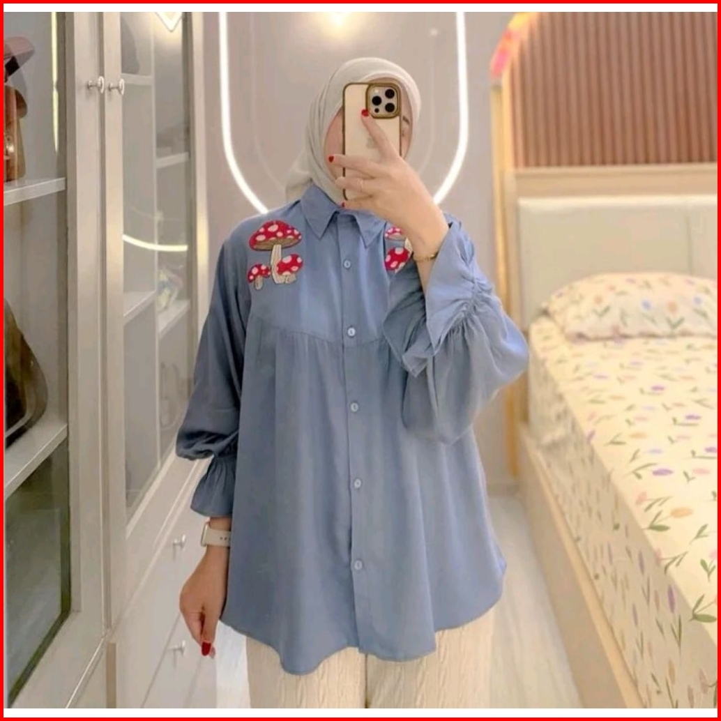 Jamur Blouse Bordir Rayon Twill Warna Beragam