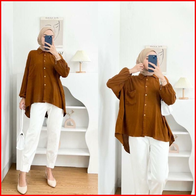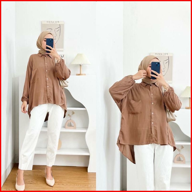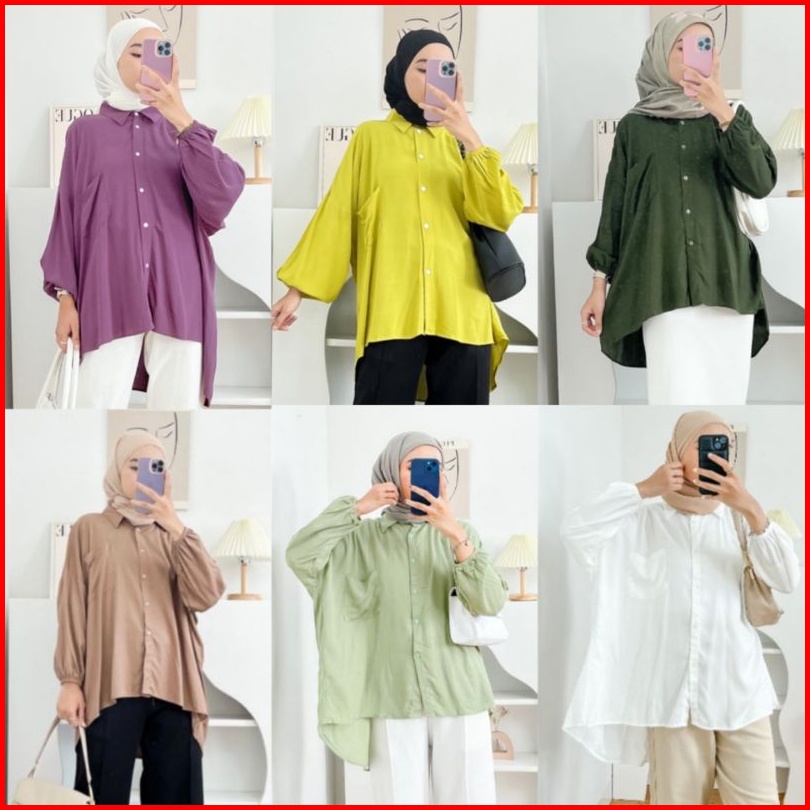 Vivara Kemeja Oversize Rayon Polos Berkerah