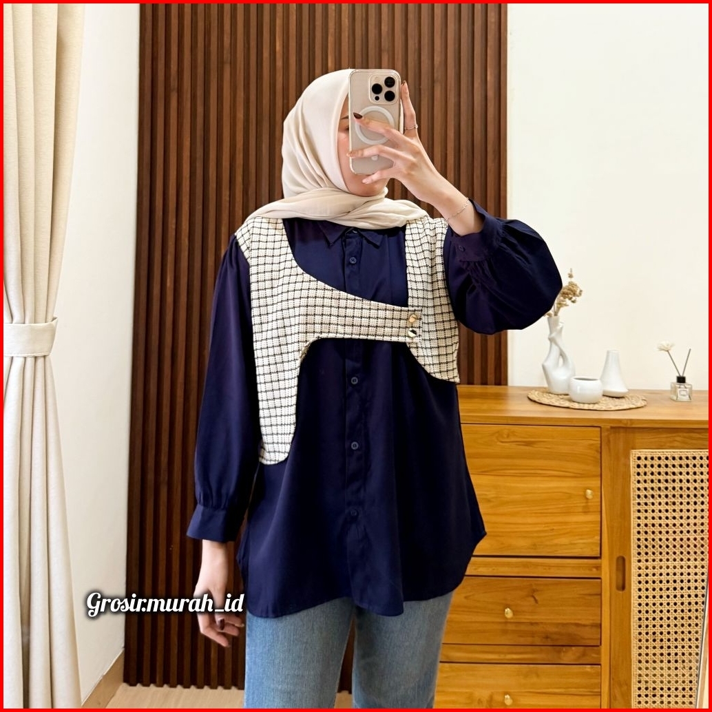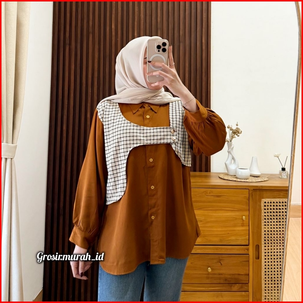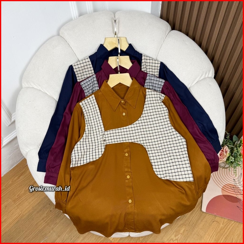 Quuena Blouse Basic Rayon Twill Kombinasi Tweed