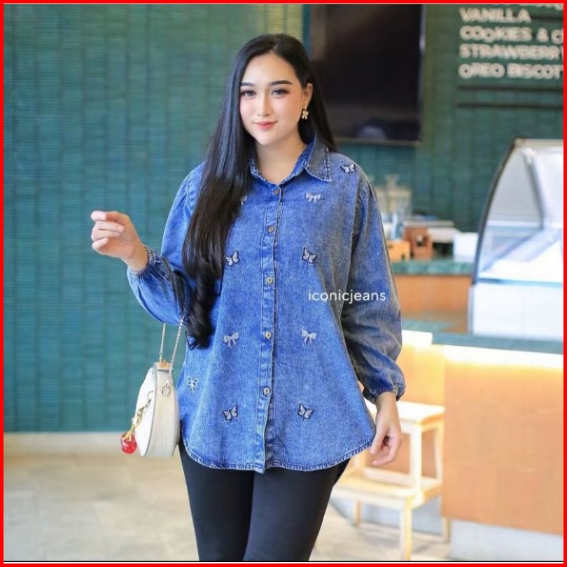 Kemeja Jeans Wanita Oversize Blouse Wanita Motif Bordil Terbaru