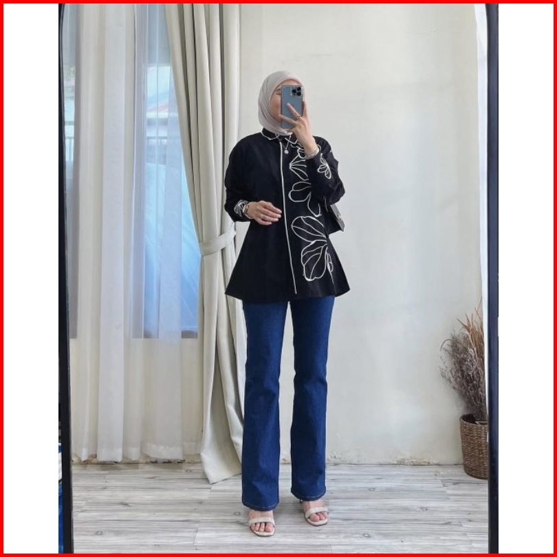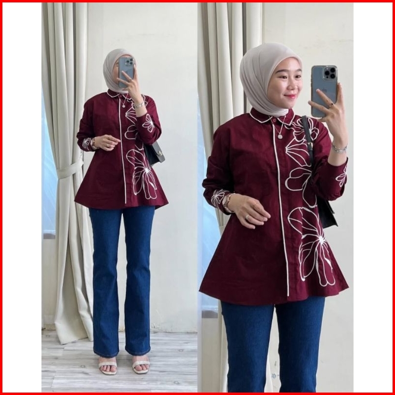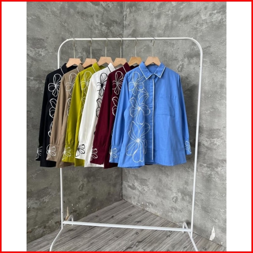 Nirva Blouse Bordir Bunga Linen Warna Pilihan