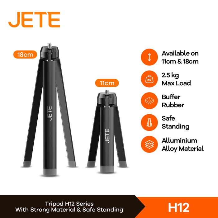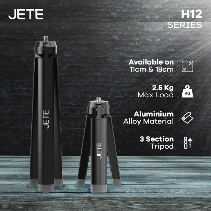 JETE H12 MINI TRIPOD STAND HOLDER HP TABLE HANDLE GIMBAL STABILIZER HAND GRIP ALUMINIUM BLACK KAMERA - 11 CM