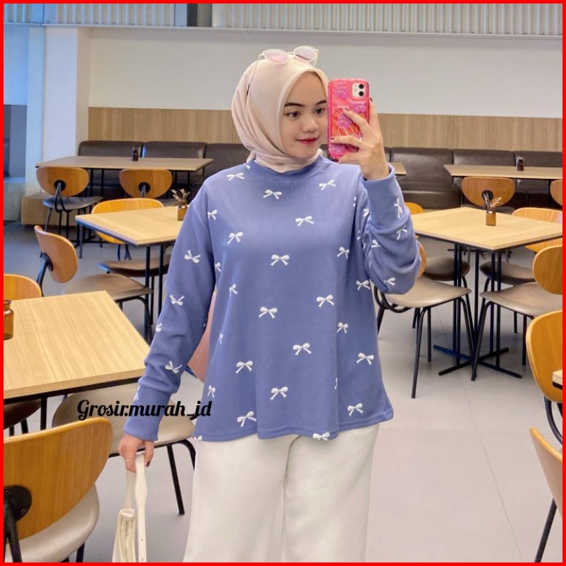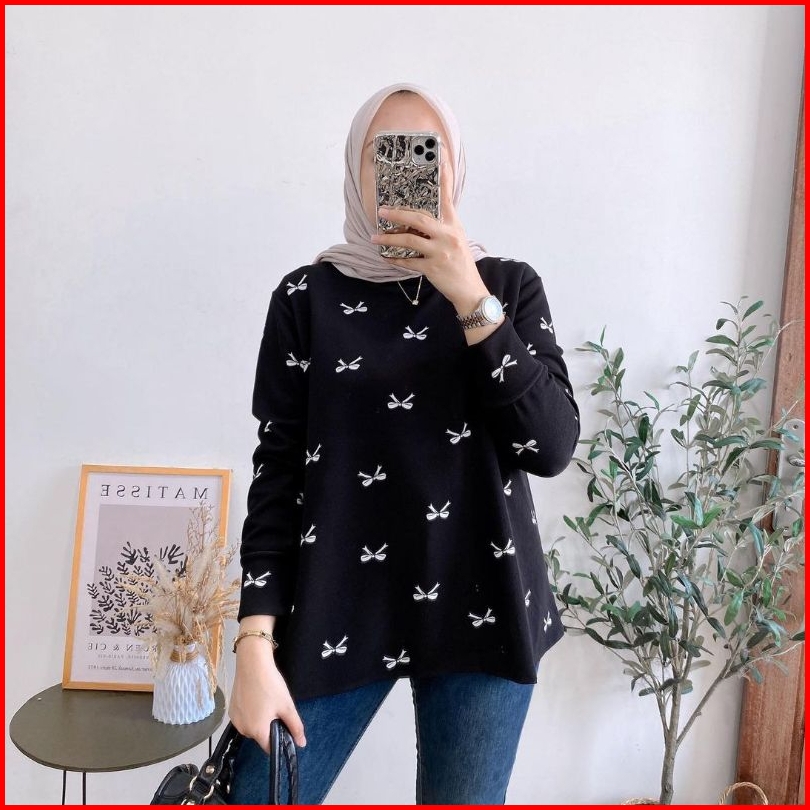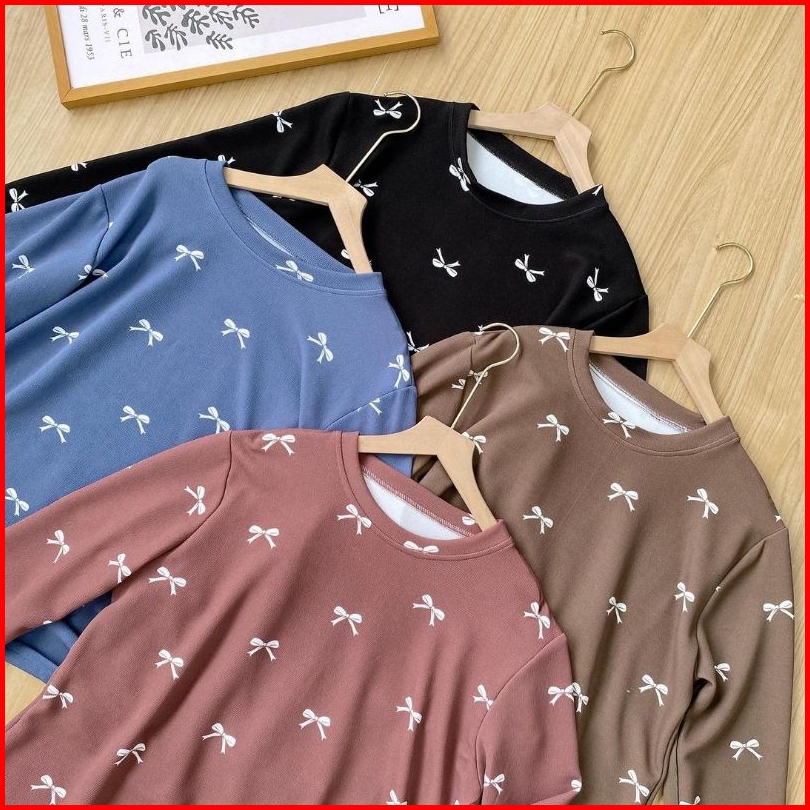 Jovela Top Atasan Kaos Wanita Lengan Panjang Pita
