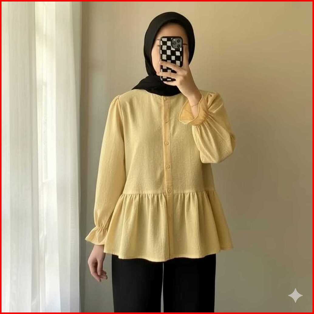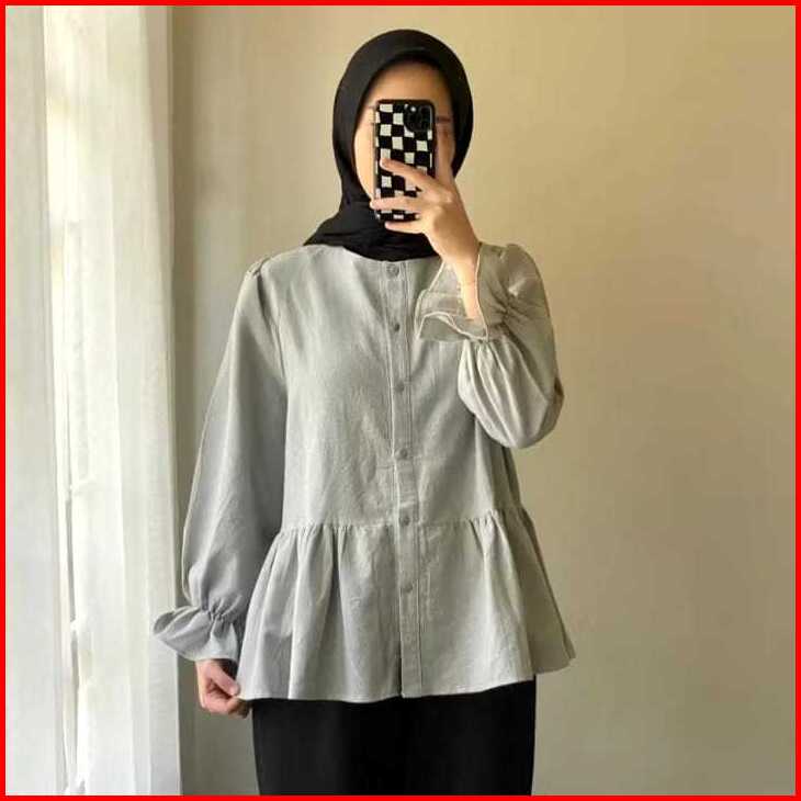 Lolly Ruffle Kemeja Shirt Oversize Linen Baju Atasan Wanita Terbaru Kemeja Wanita Kekinian