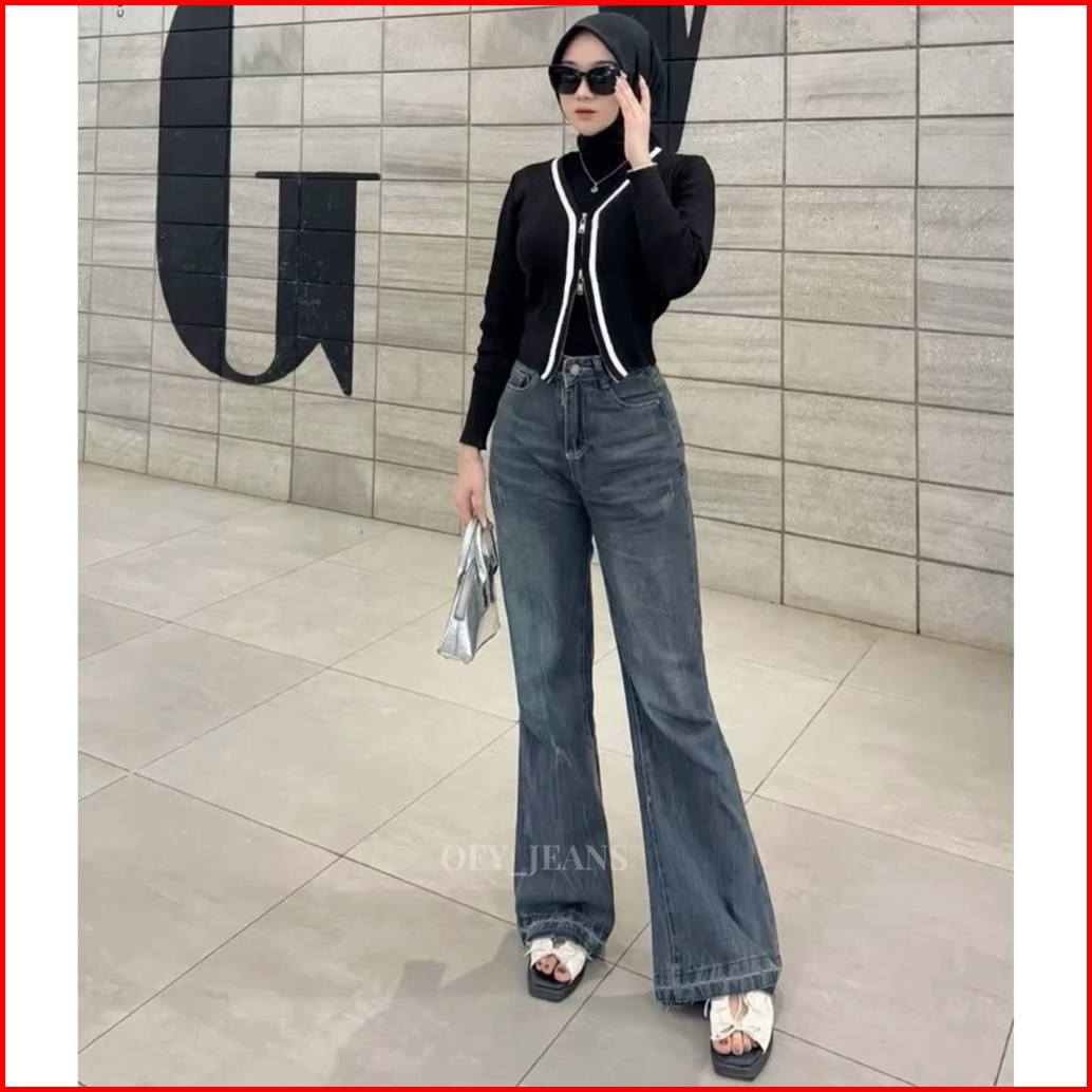 Highwaist Cutbray Jeans Retro 114 - Celana Jeans Cutbray Premium