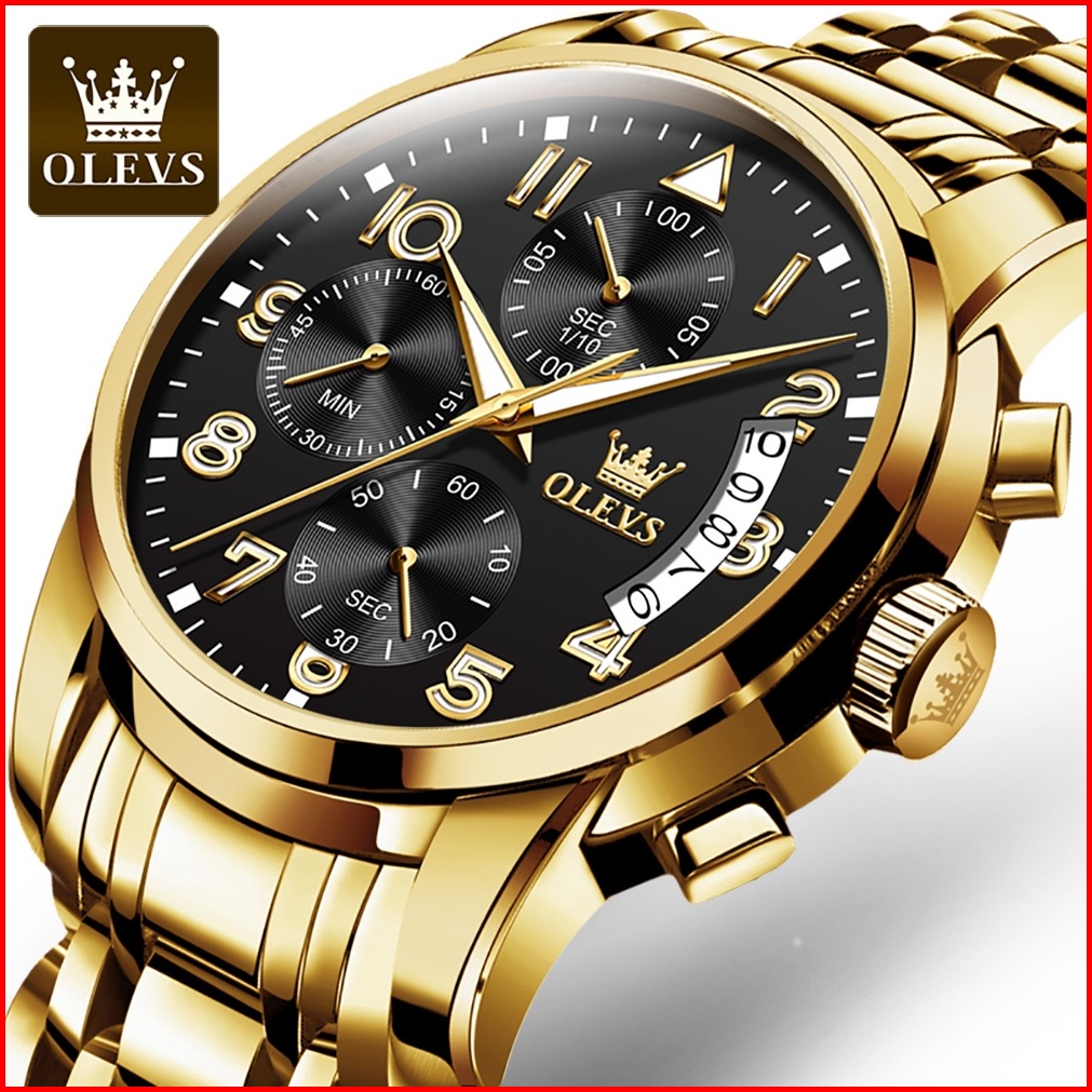 Olevs Jam Tangan Pria Anti Air Original Cowok Terbaru Tahan Luxury Led Sport Analog Chronograph Stainless Steel Watch Me