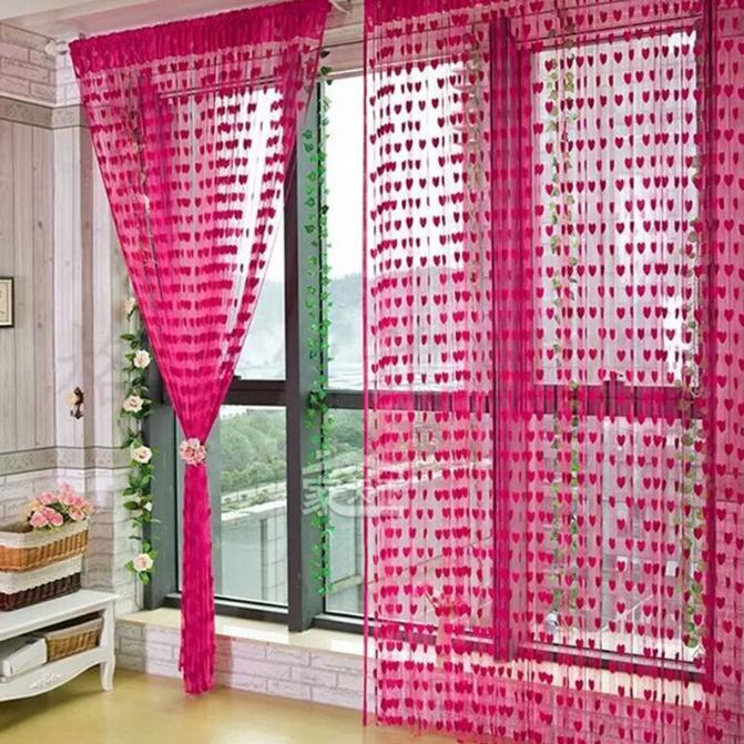 Tirai Benang Motif Love / Dekorasi Tirai Jendela / Tirai Pintu / Tirai - Hitam