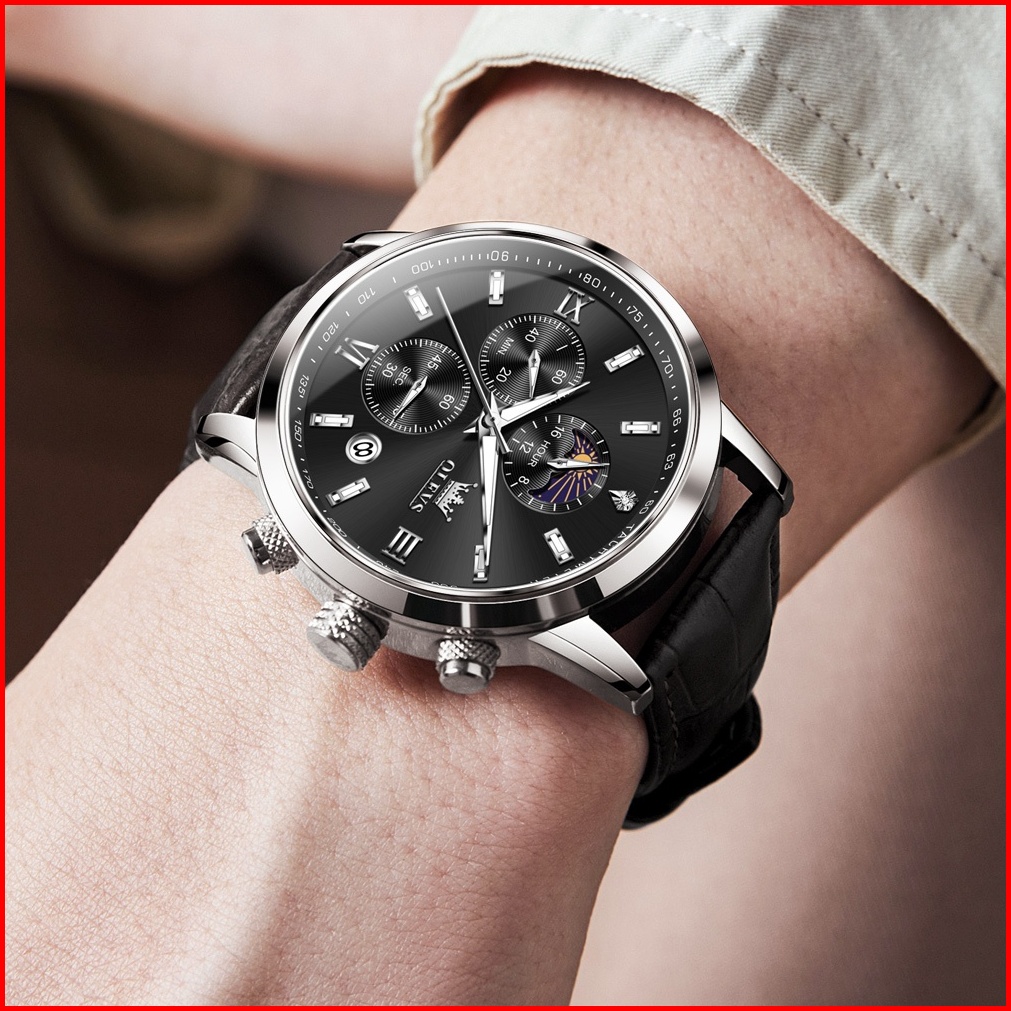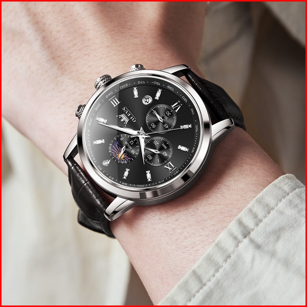 Olevs Jam Tangan Pria Original Anti Air Kulit Tahan Keren Led Hitam Luxury Multifungsi Watch Men