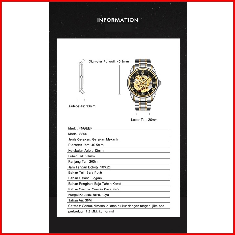 Fngeen 8866 Mekanik Otomatis Jam Tangan Pria Luxury Stainless Steel Original Anti Air Automatic Watch Kotak Gratis