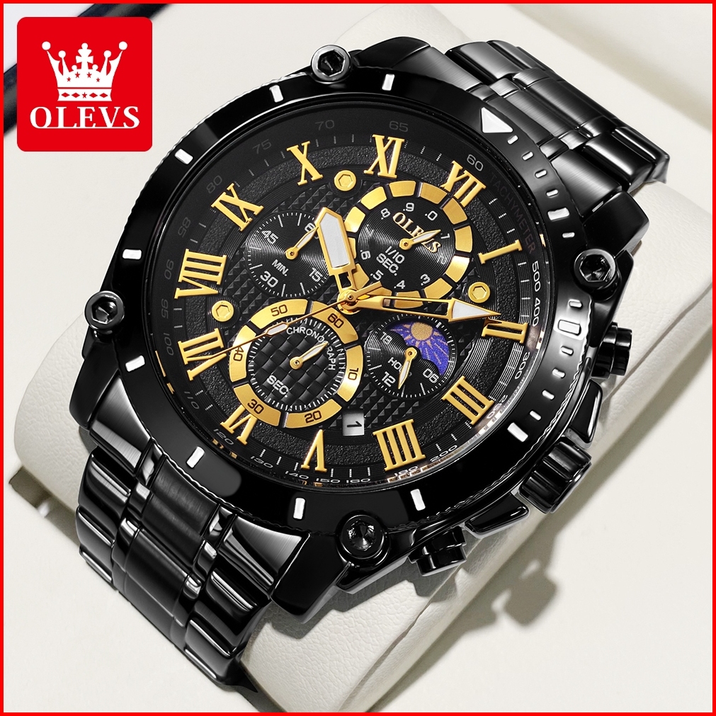 Olevs Jam Tangan Pria Anti Air Original Stainless Steel Keren Terbaru Luminous Kalender Luxury Men Watch
