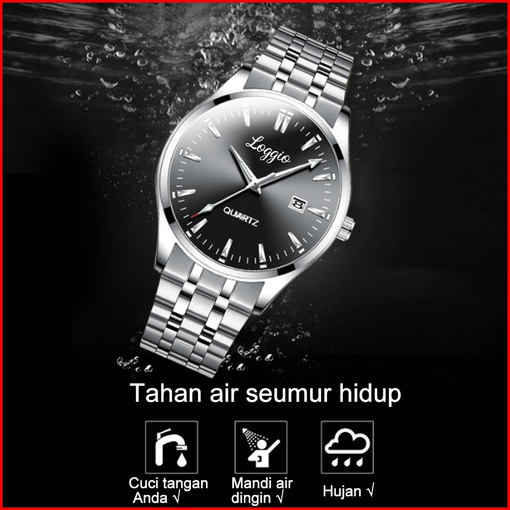 Loggio Jam Tangan Pria Anti Air Original 100 Bisnis Fashion Mewah Stainless Steel Quartz Watch
