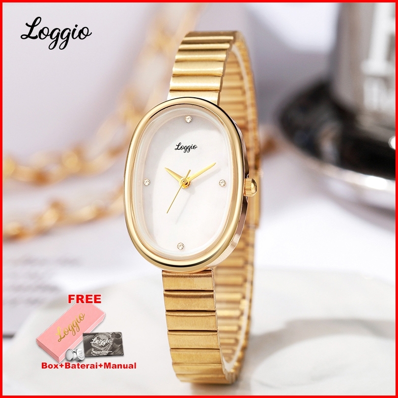 Loggio Jam Tangan Wanita Anti Air Original Korean Kasual Style Jam Tangan Cewek Tali Stainless Steel