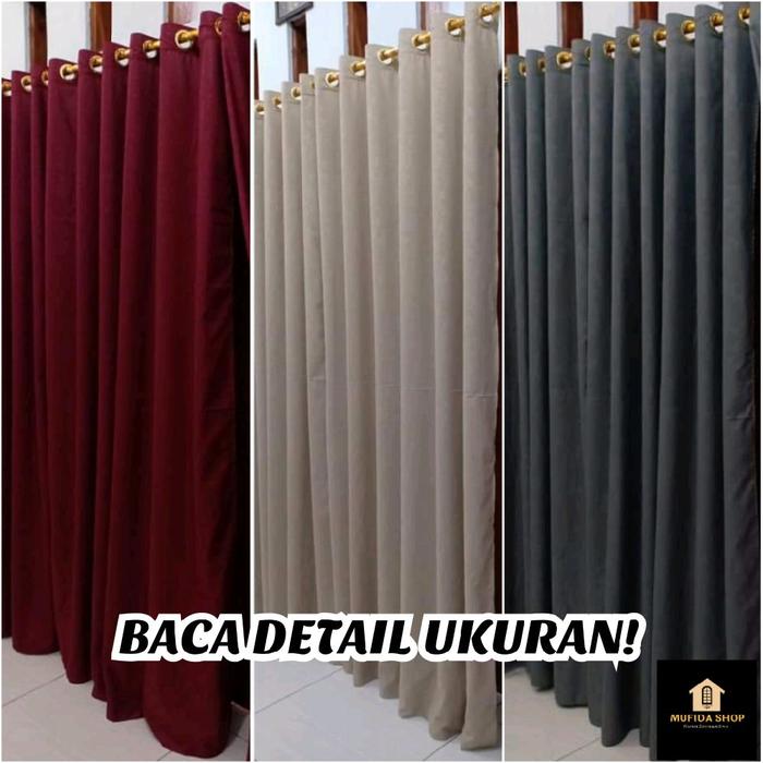 Tirai Gorden Pintu Dan Jendela Polos Embos Minimalis Ring Smokring Katun Abu Coklat Maroon Putih 1 Lembar - Hitam Jetb