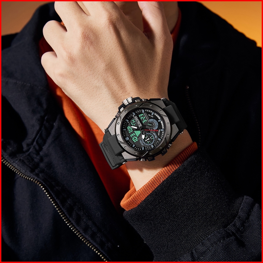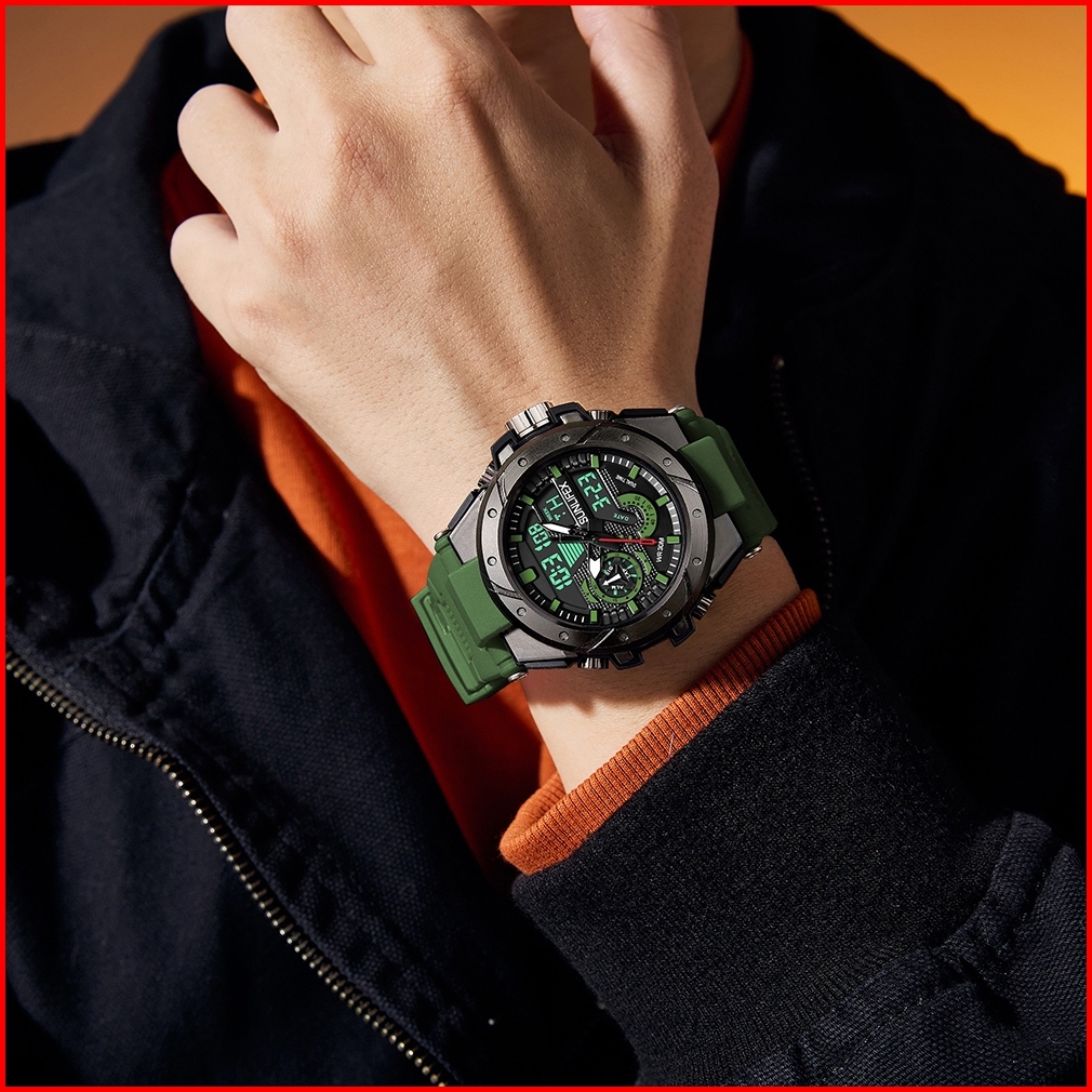 Sunlifex Jam Tangan Pria D009 Digital Analog Tali Silikon Chronograph Olahraga Jam Tangan Cowok