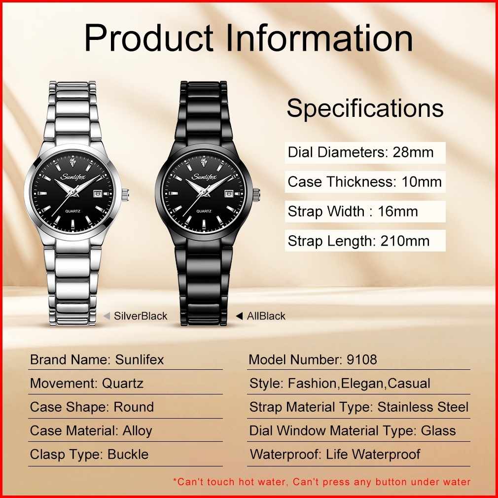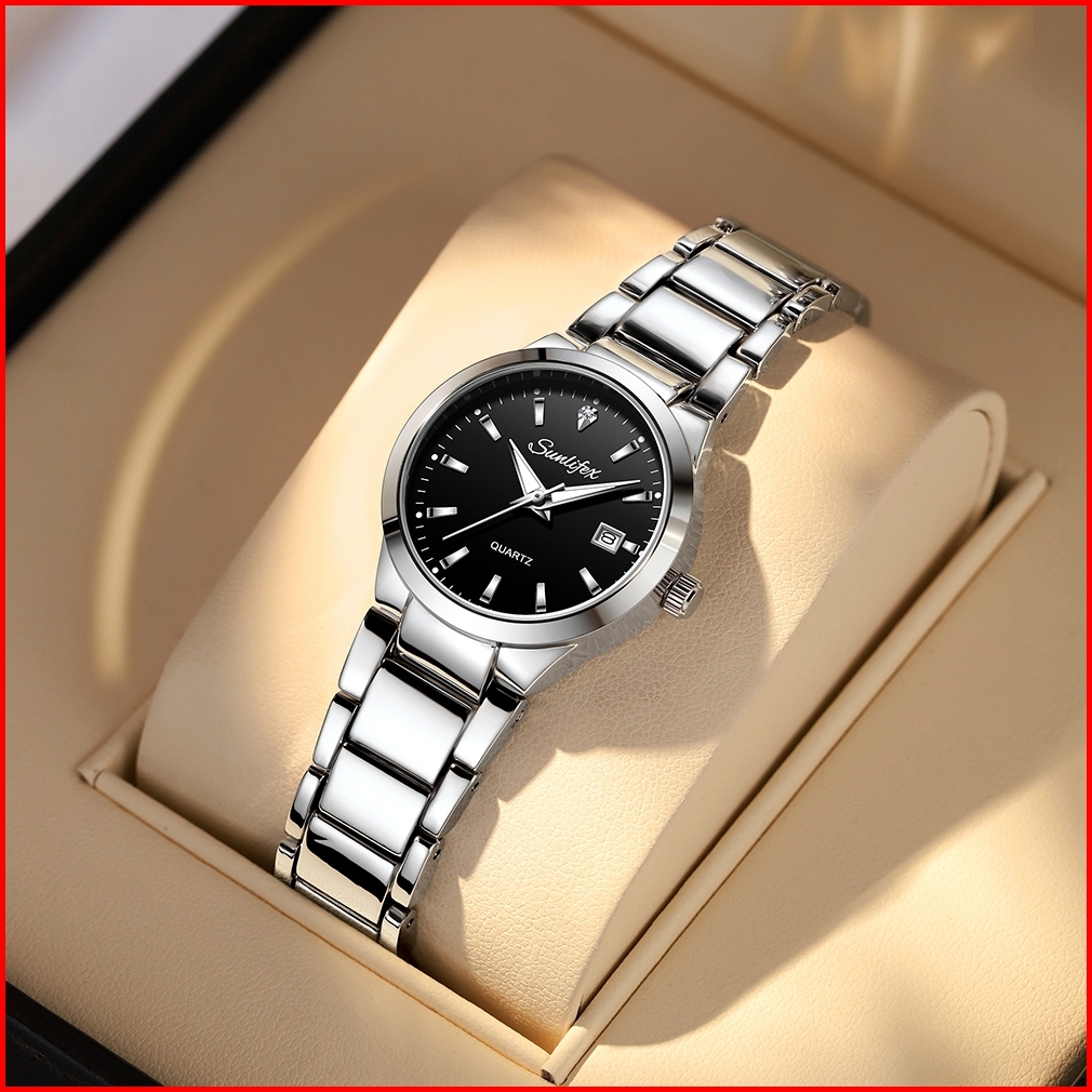 Sunlifex Jam Tangan Wanita 9108 Kalender Korea Kuarsa Tali Stainless Steel Jam Tangan Cewek Original