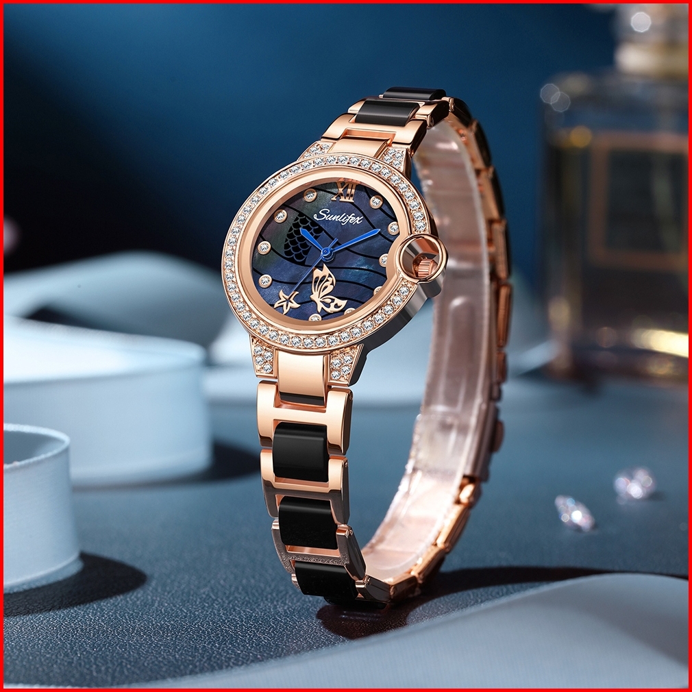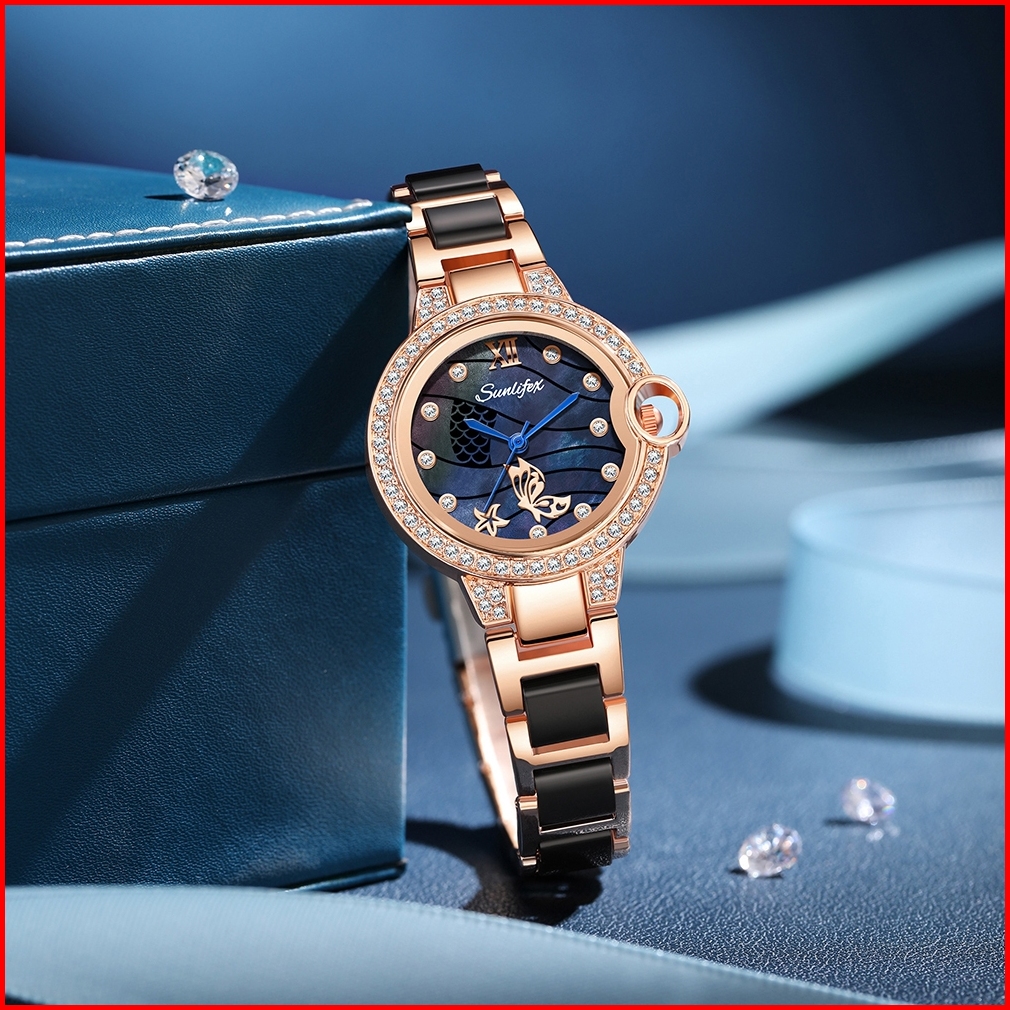 Sunlifex Jam Tangan Wanita Original 6031 Elegan Style Korea Berlian Jam Tangan Cewek Tali Keramik