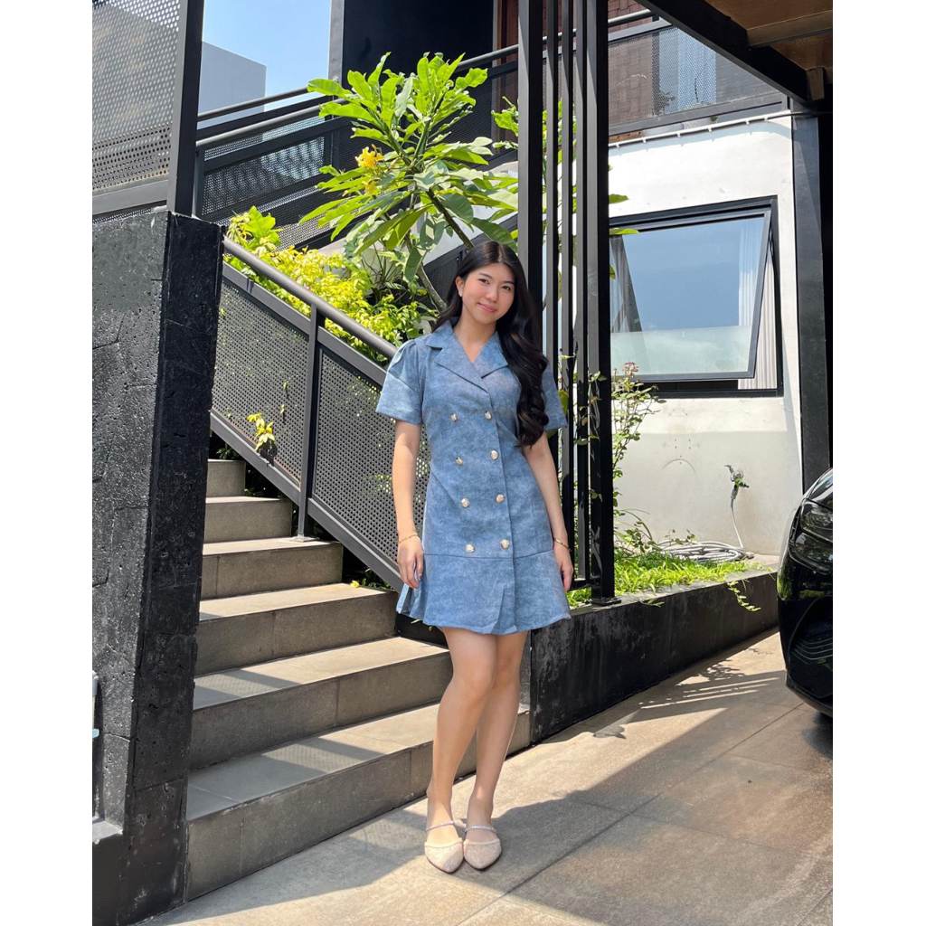 Yoona Dress - Dress denim - Dress wanita - Dress kantor - Dress midi Formal Panjang