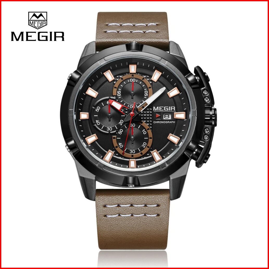Megir 2062 Jam Tangan Pria Analog Chronograph Tanggal Aktif Tali Kulit Mgos