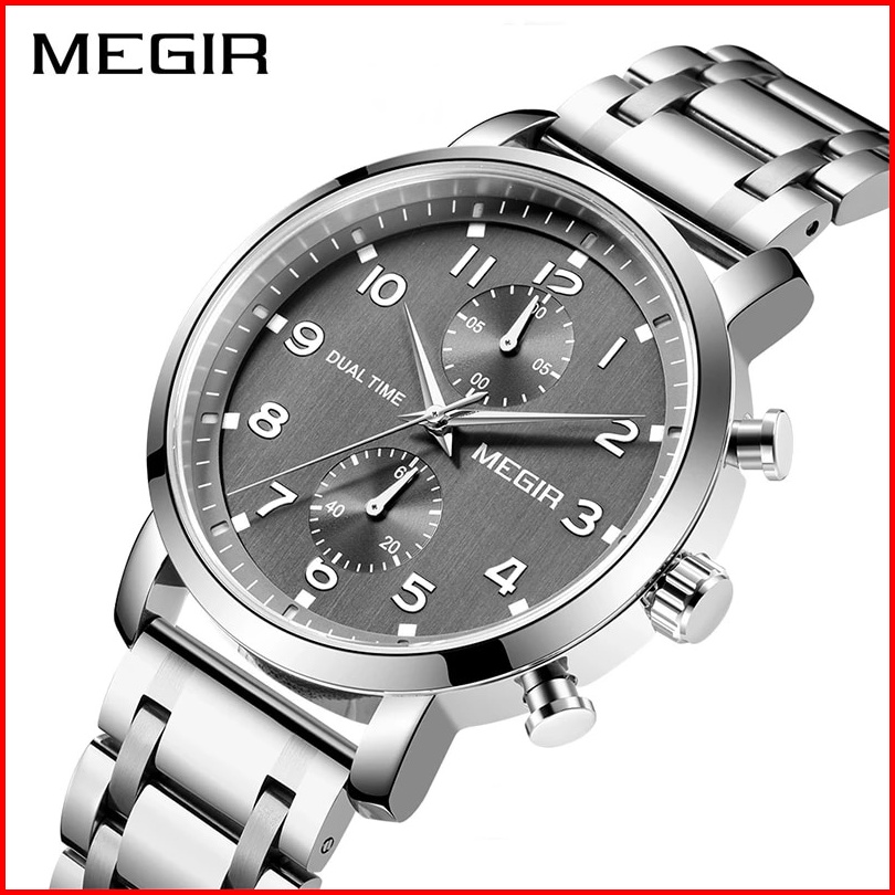 Megir 2160 Jam Tangan Pria Analog Chronograph Tali Stainless Steel Luminous Mgos