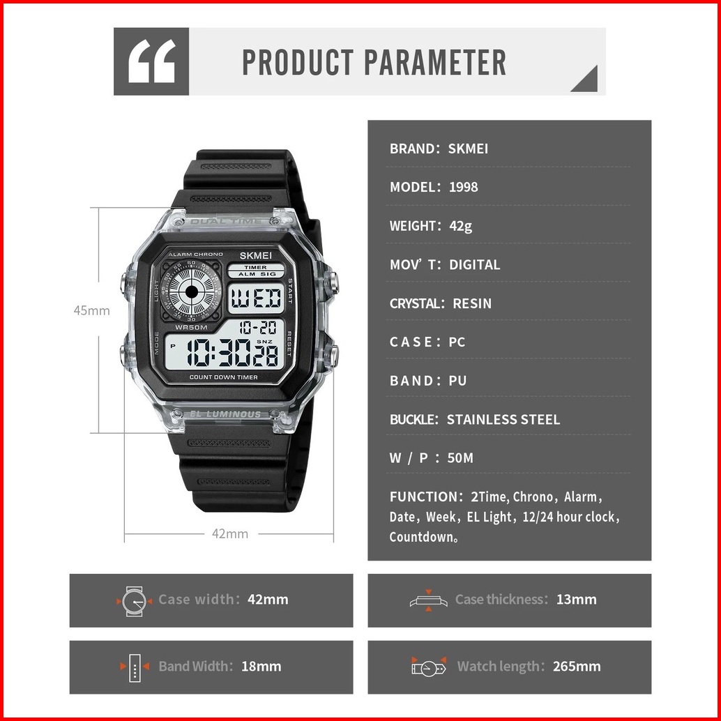 Skmei 1998 Jam Tangan Pria Wanita Digital Chronograph Sport Watch Dual Time Anti Air Tali Rubber Mgos
