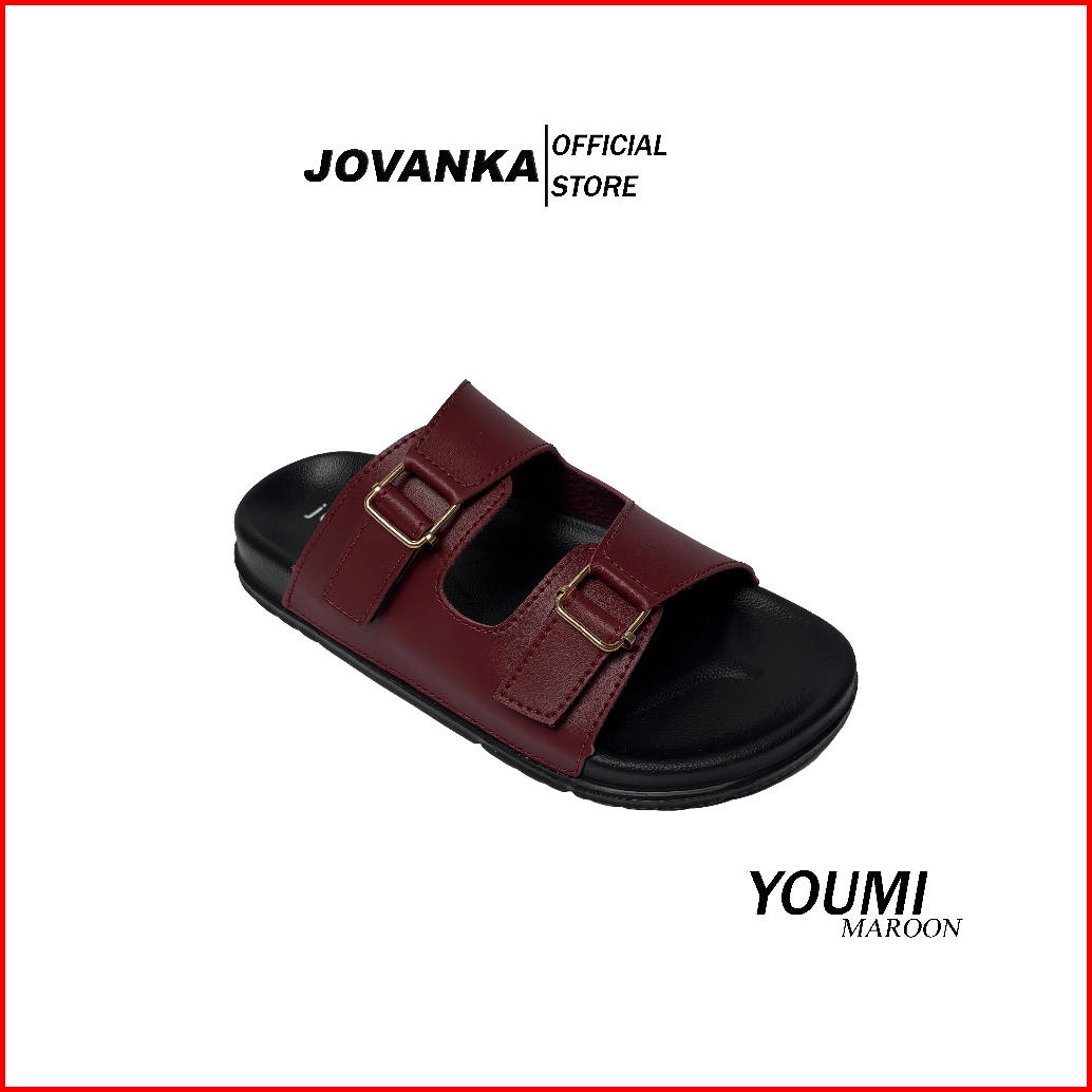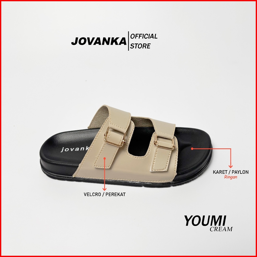 Jovanka Youmi - Sandal Wanita Platform Casual Sendal Selop Wanita Model Kekinian Cantik Elegan - Gesper Perekat Aktif Sa