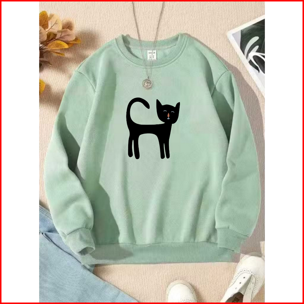 Sweater Crewneck Oblong Kucing Remaja Dewasa Premium Tebal Oversize M L Xl Xxl