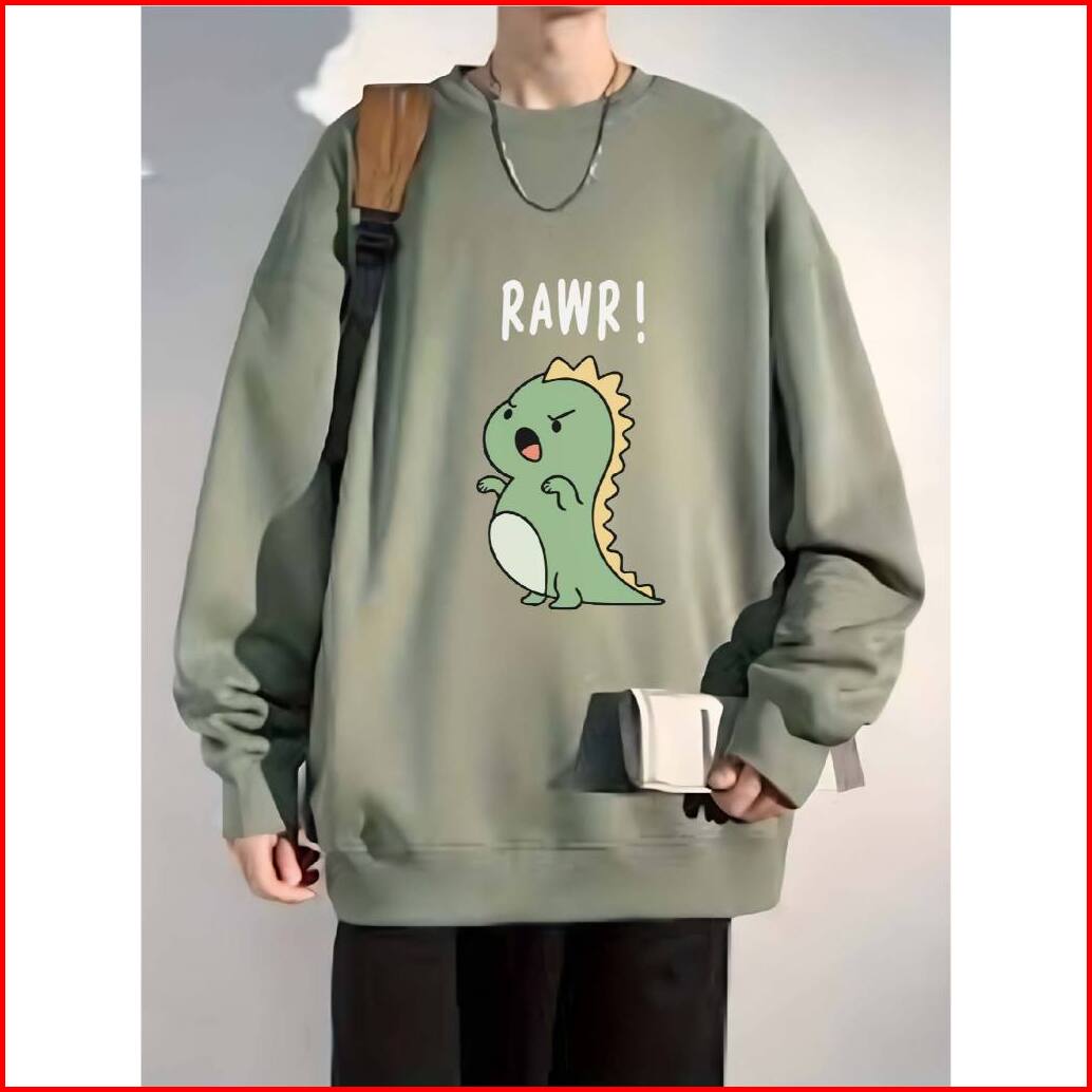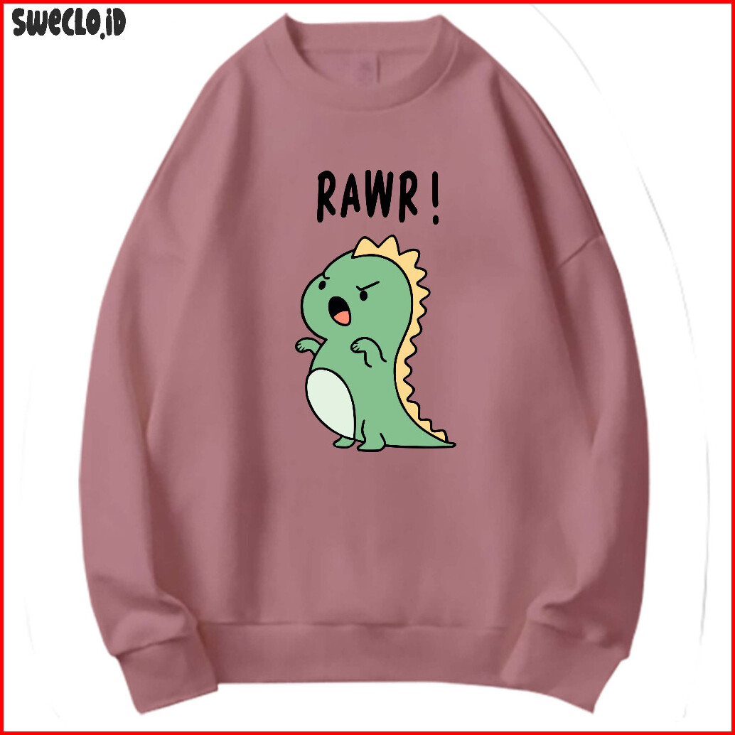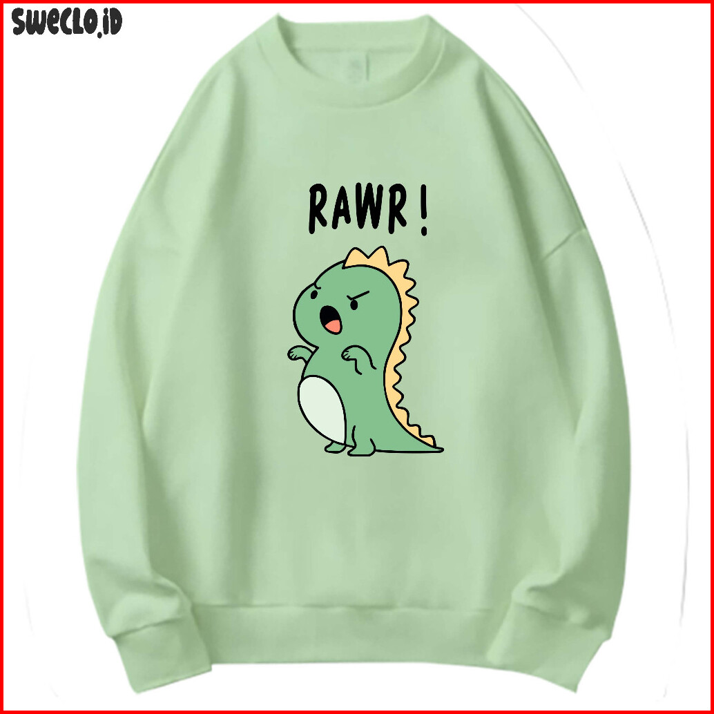 Crewneck Sweater Jyb Oversize Rawr Dino Sablon Size M-xxl Pria Wanita