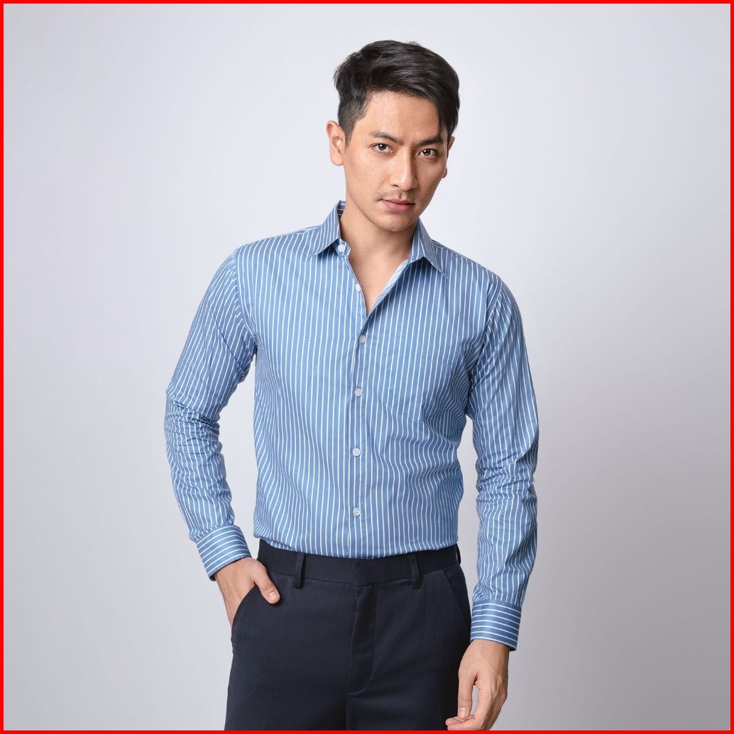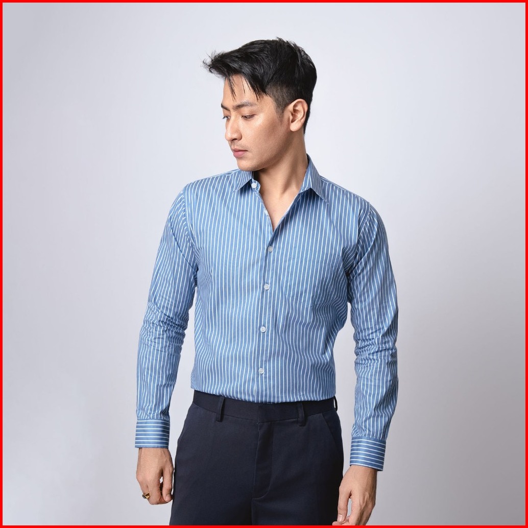 Vengoz Kemeja Pria Slim Fit - Hugo Stripe Shirt Blue Sky Ls
