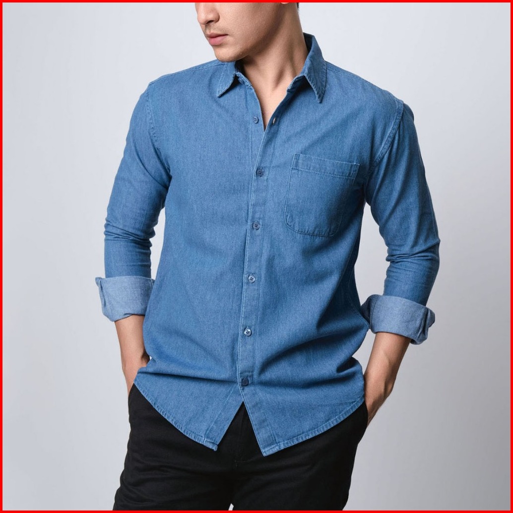 Vengoz Kemeja Jeans Pria - Mens Denim Shirt Ls Space Blue - Space Blue