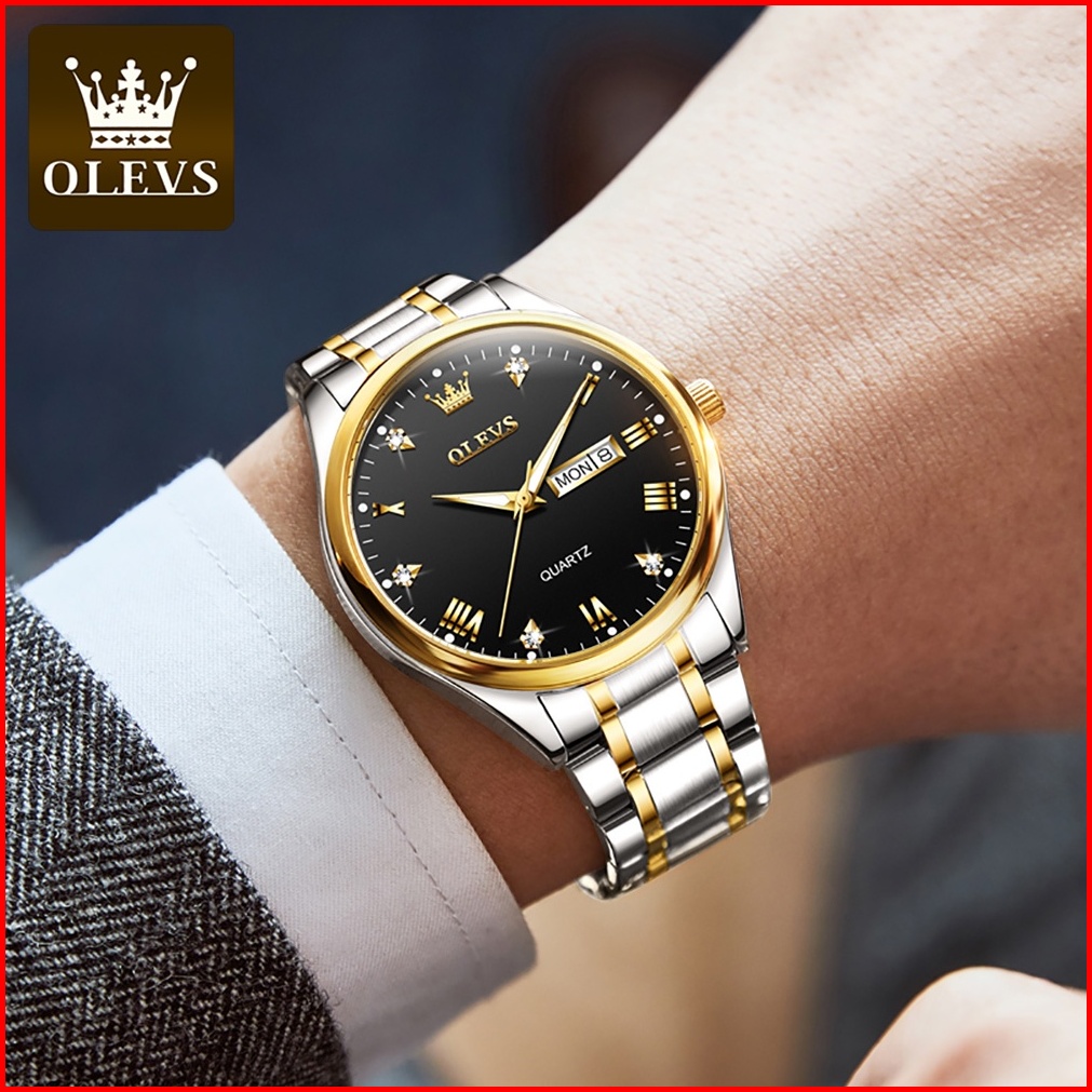 Olevs Jam Tangan Pria Original Anti Air Luxury Analog Keren Tahan Bisnis Kuarsa Asli New Arrivel Stainless Steel Men Wat