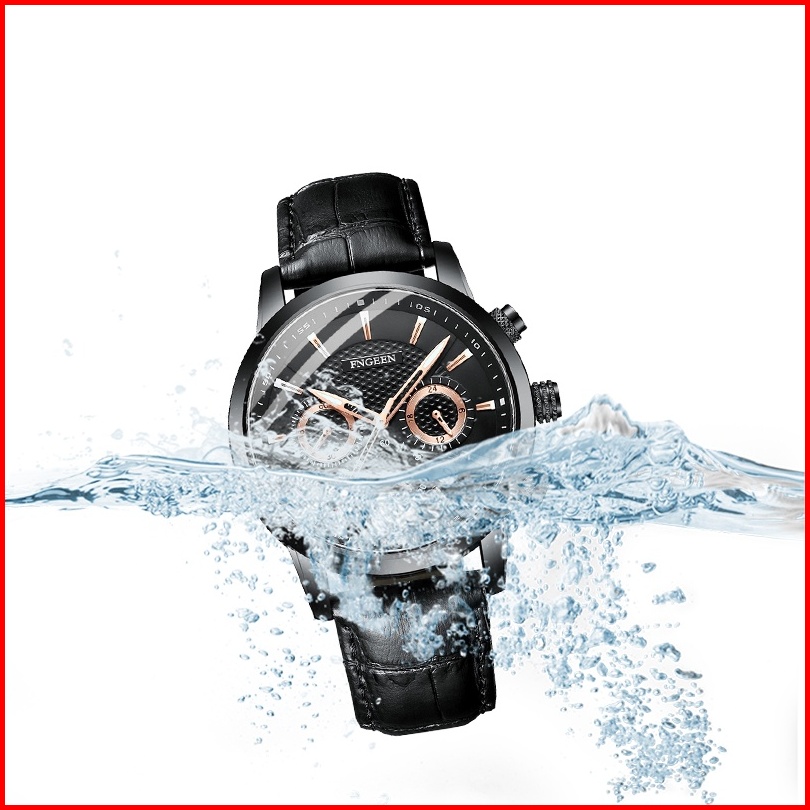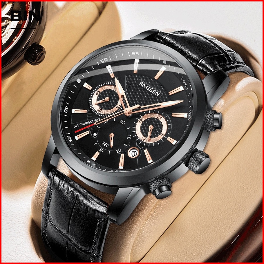 Fngeen 6122 Jam Tangan Pria Original Tali Kulit Kalender Tahan Air Olahraga Kronograf Jam Tangan Cowok Kotak Gratis