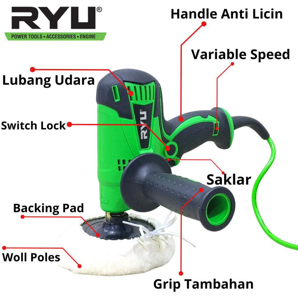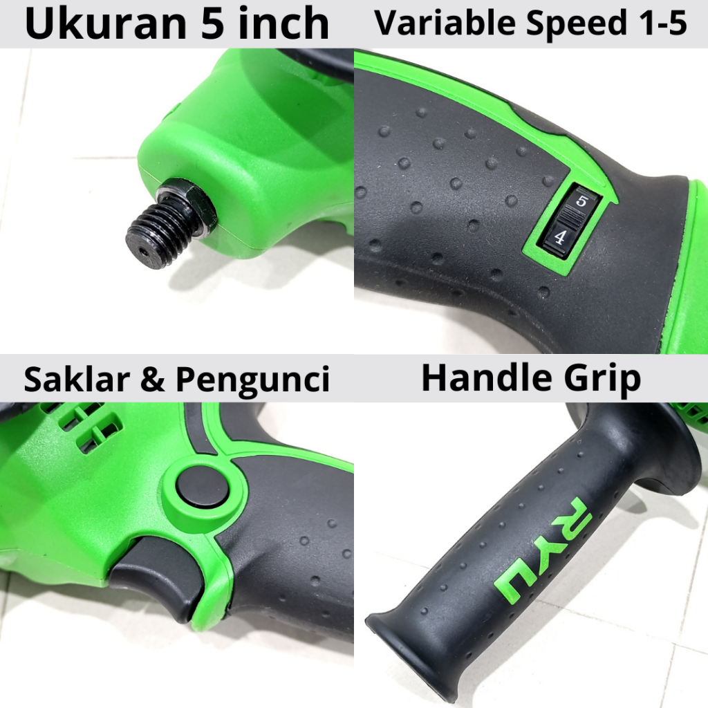 RYU Mesin Poles Body Motor Mobil 5 Inch RGP 125E Gun Polisher Varible Speed Alat Poles Cat Full Set
